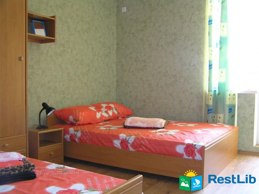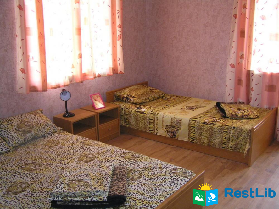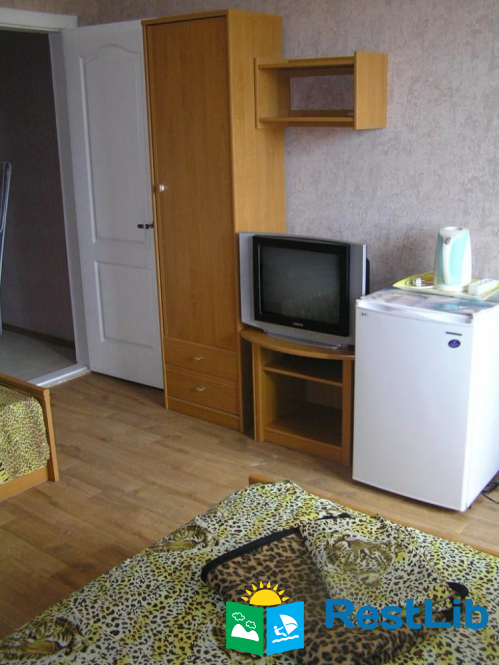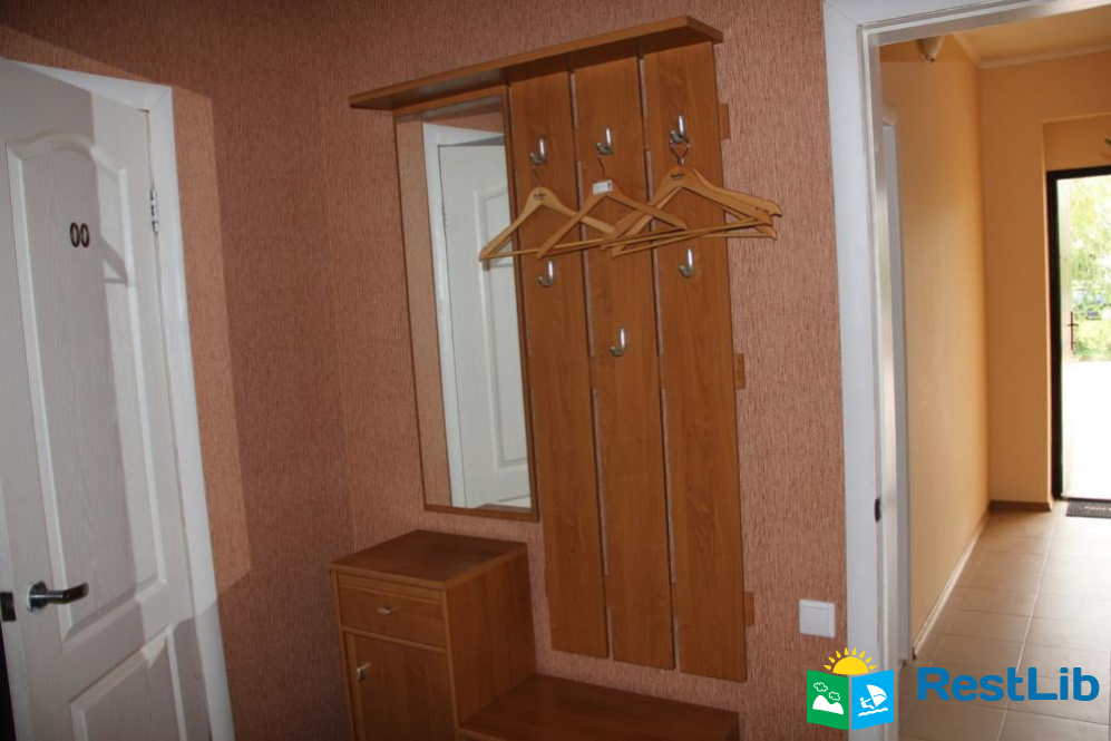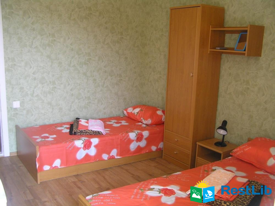 В номере: две кровати (двуспальная + односпальная), прихожая, ванная комната (душ, умывальник, туалет), балкон, холодильник, кабельное ТВ, Wi-F (во дворе), кондиционер, электрочайник. Перед коттеджем летняя площадка, мангал, стоянка (не охраняемая). Есть общая кухня (по расписанию). Есть столовая (3-х разовое комплексное питание, можно разделять).