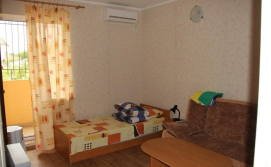 ДВУХКОМНАТНЫЙ С КУХНЕЙ: Комната 1: диван, односпальная кровать, мебель, телевизор, Wi-Fi (во дворе). Комната 2: двуспальная кровать, телевизор, Wi-Fi (во дворе). Кухня: маленький холодильник, СВЧ, двухкомфорочная электрическая плитка, электрочайник, мойка. Прихожая, ванная комната, в каждой комнате кондиционер и балкон. Перед коттеджем летняя площадка, мангал, стоянка.