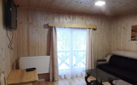 Півлюкс — 3 односпальні ліжка, шафа для одягу, телевізор, стіл зі стільцями, холодильник, електрочайник; санвузол (душова кабіна, туалет, умивальник).