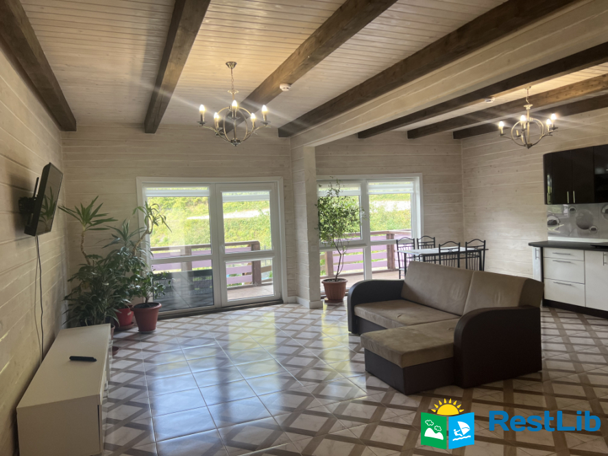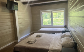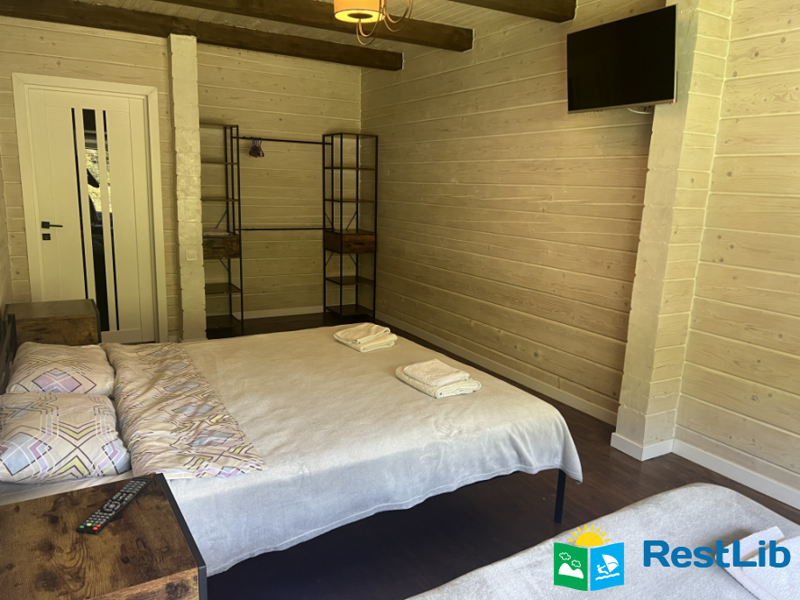 Здається гостьовий будинок в С.Микуличин в 20 км від Буковелі. Будинок має 2 поверхи, 2спальні і кухню-студію.В спальнях стоять по одному двоспальньому ліжку і в одній з спальні ще одне односпальне ліжко. В кухні-студії розкладний диван і в холі на 2 поверсі диван-гном. На кухні є все необхідне щоб розігріти чи зварити собі їсти. За домовленістю можемо готувати сніданки( окремо оплачується), надати фен, сушки для одягу, праску. До 300м від нас знаходяться магазин, ресторан, чани, баня, зупинка громадського транспорту. В Микуличині також можна піднятися в гори на джипах чи квадроциклах, прогулянка на конях.