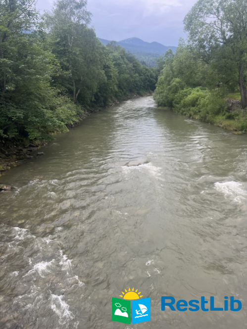 Якщо Ви любите відпочинок в горах, або мрієте жити поближче до природи, або мати свій бізнес, то Вам чудово підходить цей варіан. Будинок розташований в С.Микуличин Івано-Франківської обл., це прекрасне розташування для різних запросів у відпочинку. Це їзда в гори на квадрациклах чи джипах-в Микуличині; катання в горах -20км від Буковель, 14км від Ворохти; прогулянки по зоопарку, дитячі атракчиони чи по ринку -20км від Яремче. Найголовніше будинок розташований на першій лінії, тому не треба боятися бездоріжжя і що можна застрягнути. Сам будинок побудований повністю з брусу, територія облагороджена бруківкою від центральної дороги, парковка на дві машини з однієї сторони і з іншої(зі сторони річки) тераса 2,5*7м. По обидві сторони будинку чудовий краєвид на гори. Крім того видно такі гори як Хомяк, Ягідна, Ліснів. Зі сторони тераси в 20м внизовині протікає р.Прут та через дорогу паркова зона з фруктових дерев.