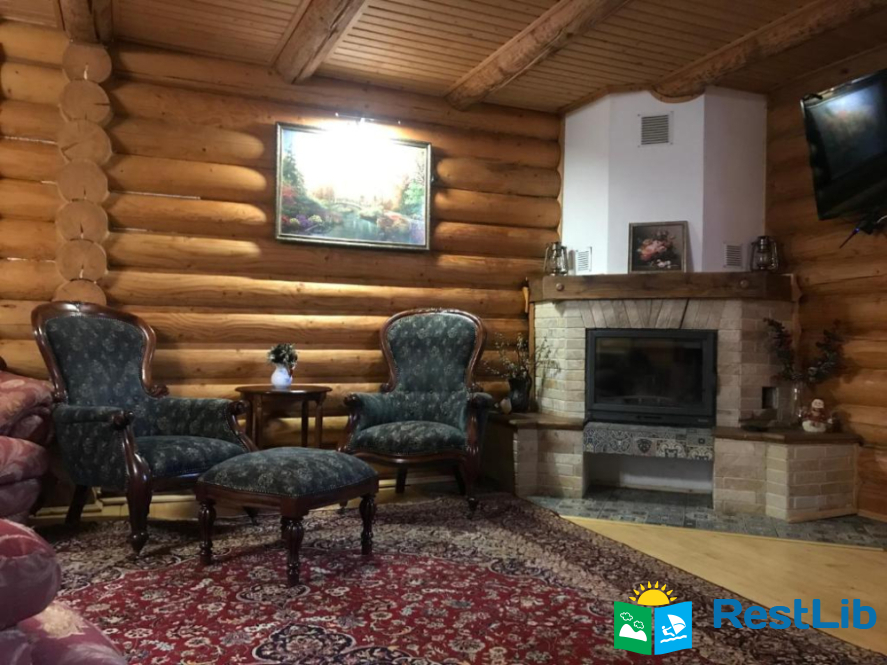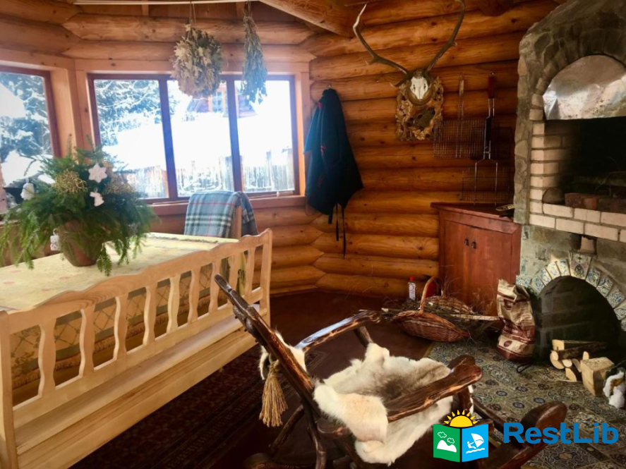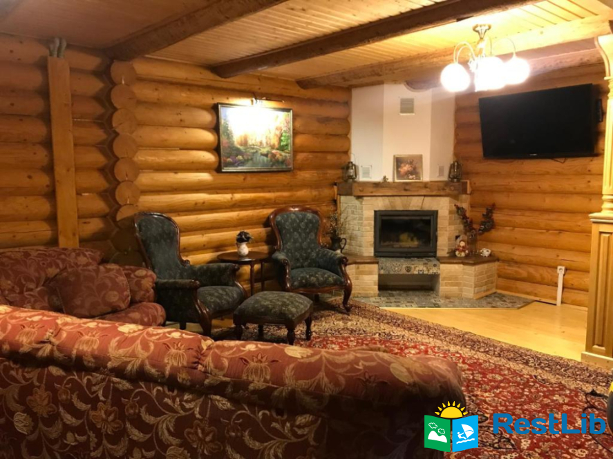 - На першому поверсі вітальня з каміном, кухня зі всім необхідним обладнанням, санвузол (є пральна машина), дві великі тераси.