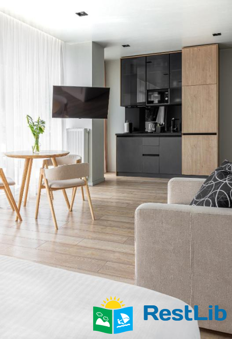 Бездоганні двокімнатні апартаменти, виконані в сучасному авторському стилі, розраховані для проживання до 4 дорослих або батьків з дітьми. Апартаменти складаються з просторої спальні та гостинної з повністю обладнаною кухнею та пральною машиною. В деяких апартаментах апартаментах даної категорії є 2 санвузла, що робить їх ще більш комфортними для компанії друзів чи родини. Кожна кімната апартаментів та ванна кімната мають індивідуальний клімат контроль.