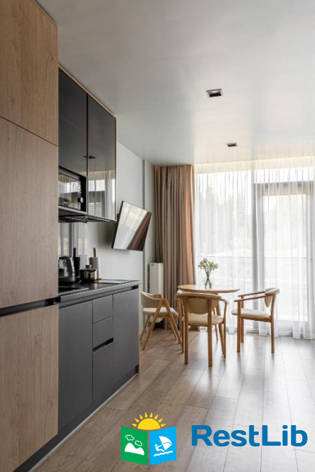 Сучасні однокімнатні апартаменти, з яких відкривається неймовірний вид на лижні схили та ліс. Апартаменти розраховані для проживання 2 дорослих. В апартаментах знаходиться повністю обладнана кухня, пральна машина, роздільний клімат контроль в житловій кімнаті та ванній, простора ванна кімната з душовою кабіною. Кожні апартаменти мають вихід на балкон з панорамним видом на красу Карпат.