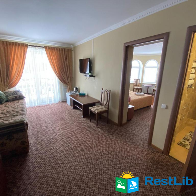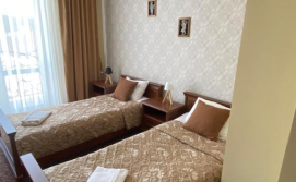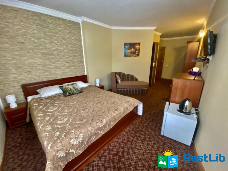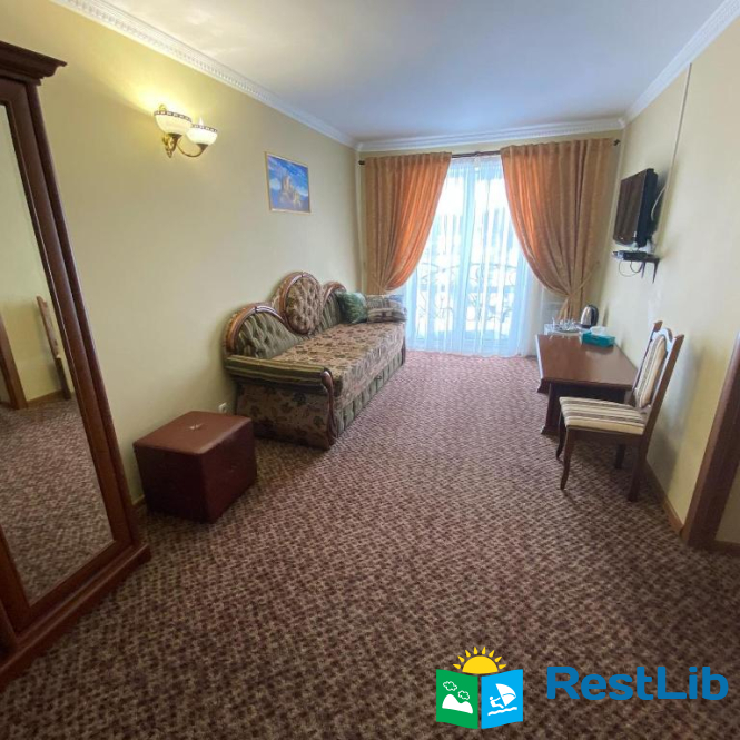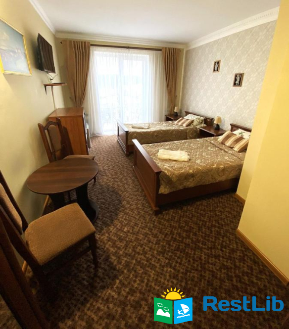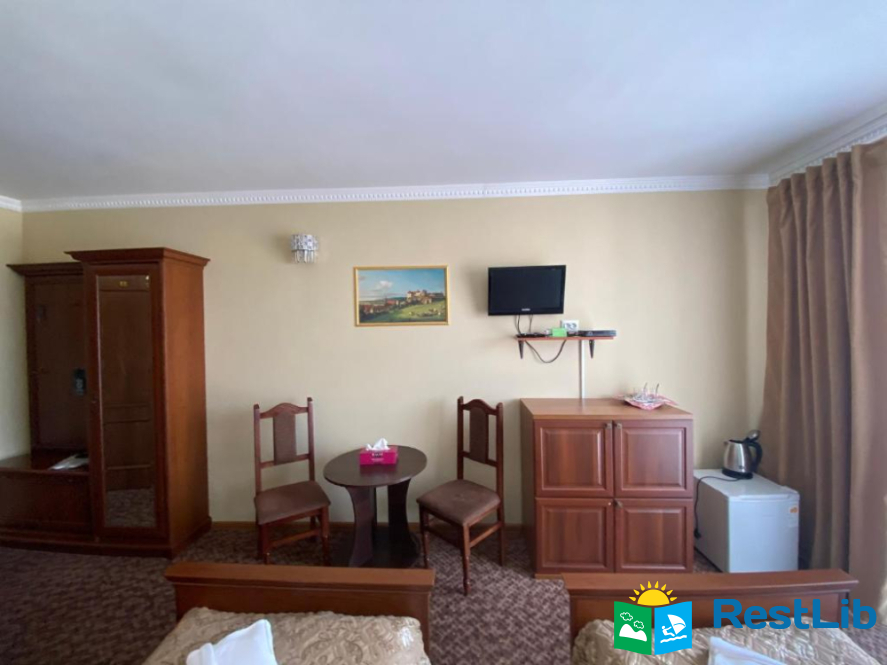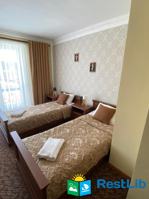 Будівля має чотири поверхи: три поверхи з номерами та перший поверх з кафетерієм, рецепцією та госпблоками.
