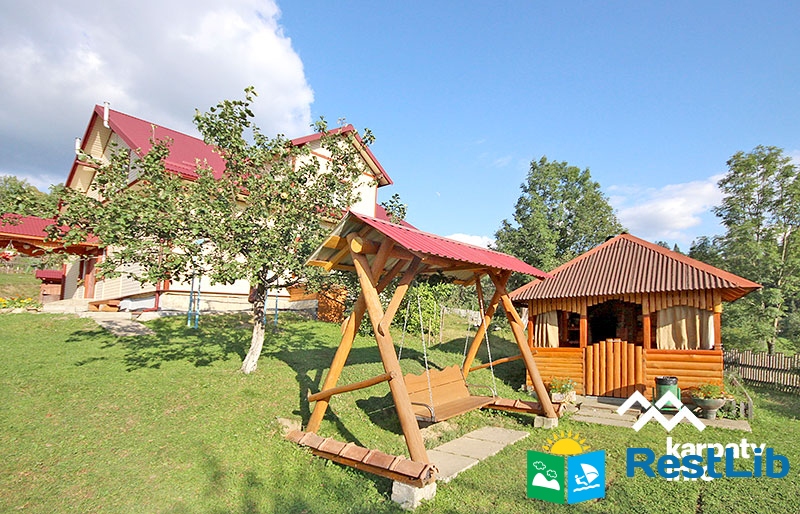 На території є будинок на 9 осіб і будиночок на 2-4 особи, також є альтанка, мангал, гойдалка, дитячий майданчик.