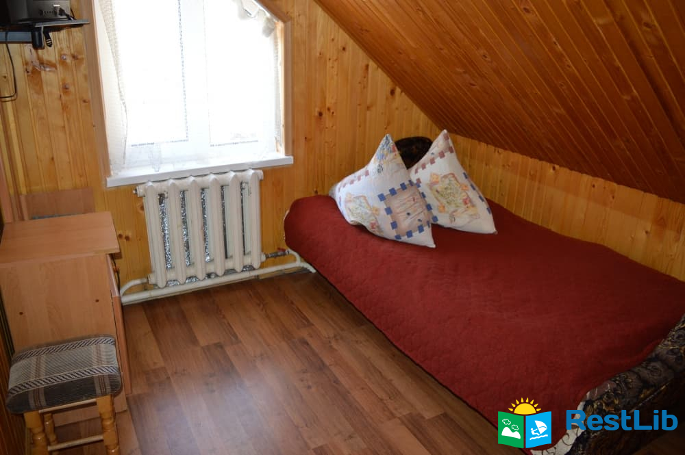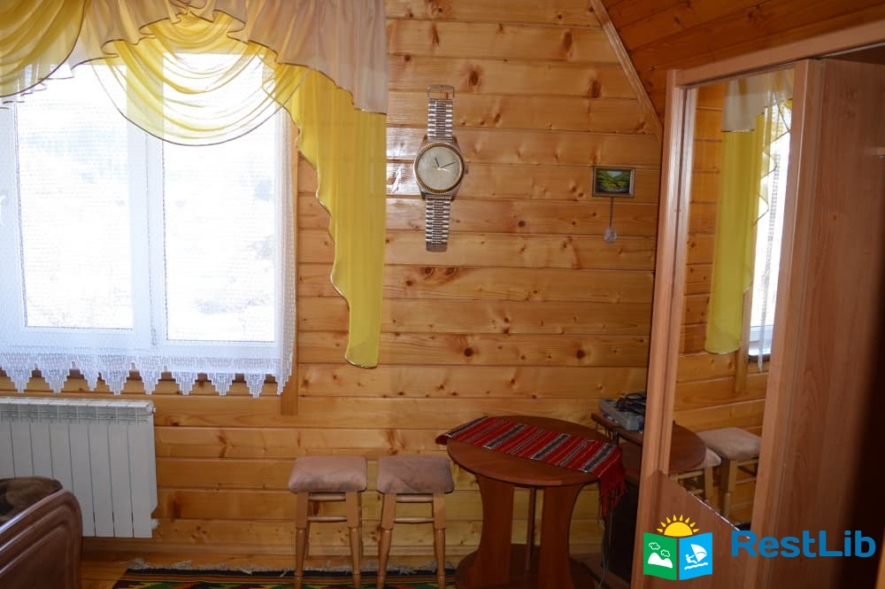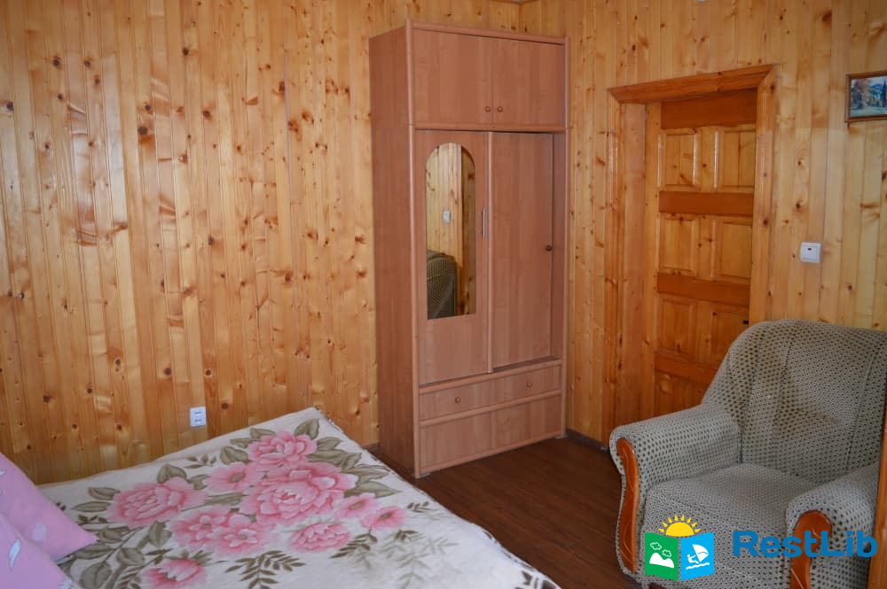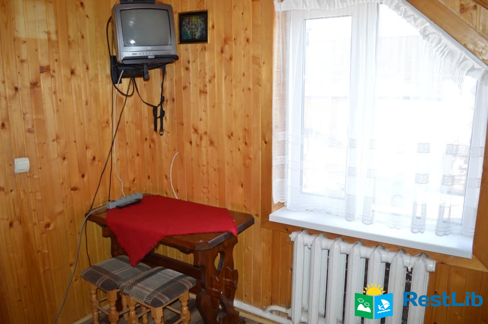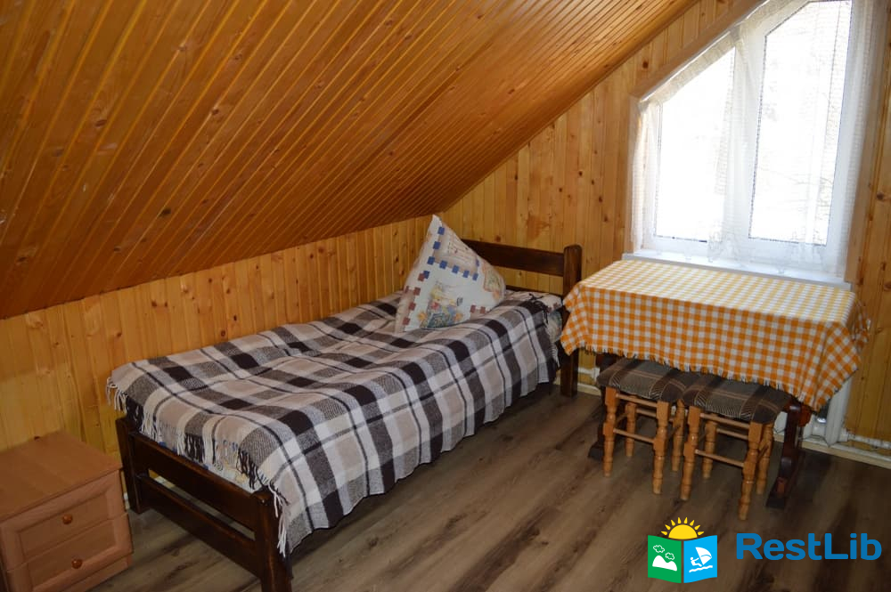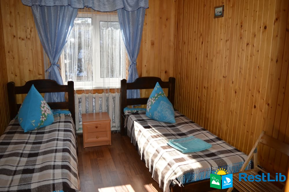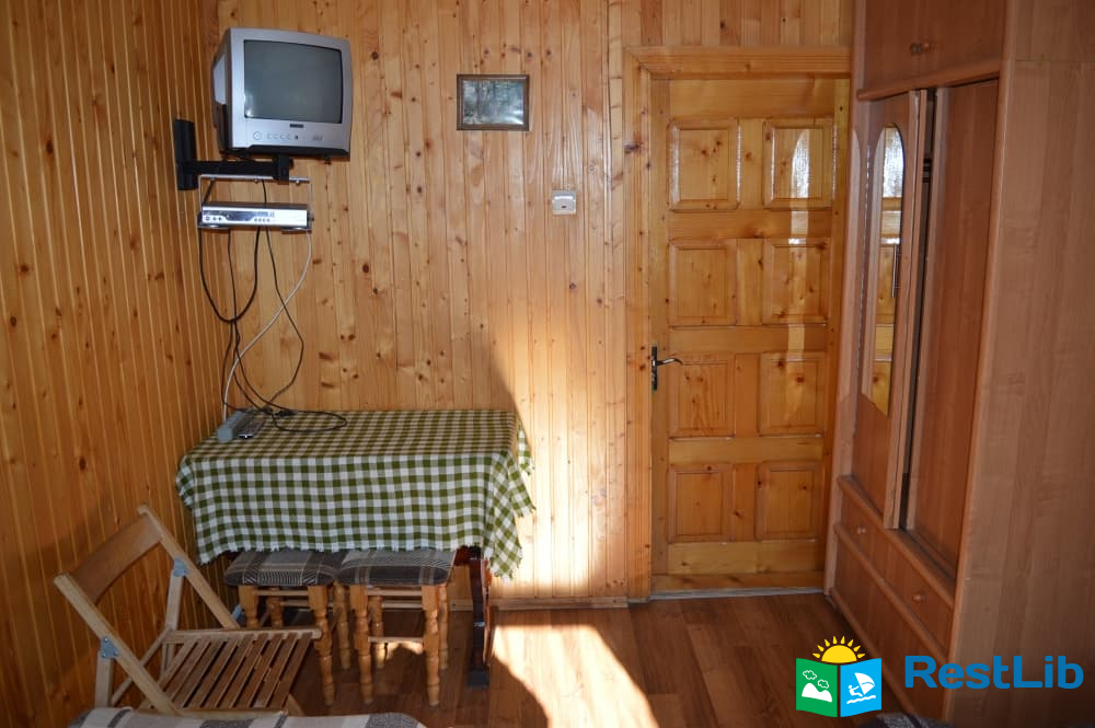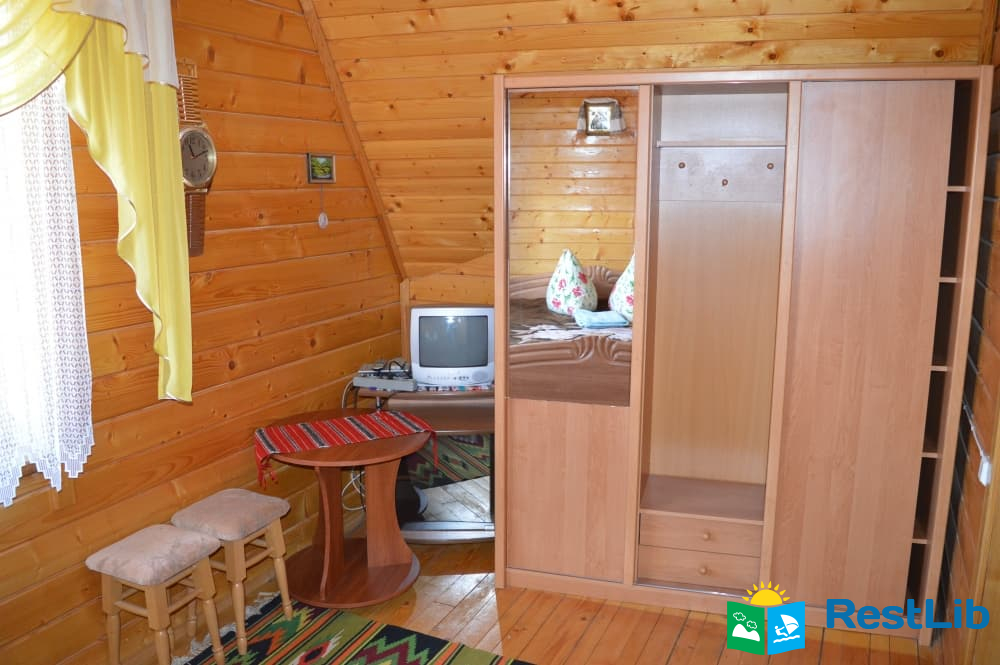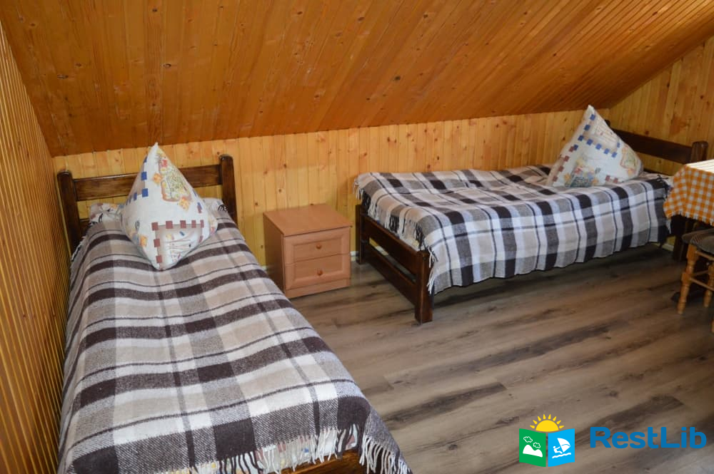 Один будинок знадється повністю на 8 осіб, без господарів. Перший поверх : кухня-столова (кухонний гарнітур, техніка, посуд, обідній стіл), два двомісні номери, роздільний санвузол . Другий поверх : два одномісні номери, одни двомісний з окремими ліжками.