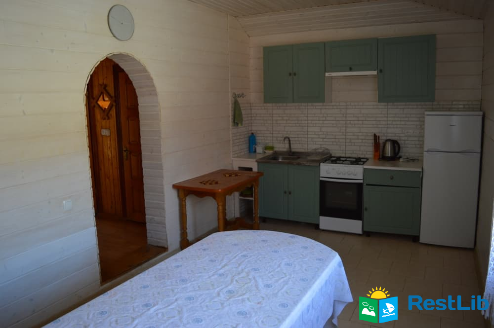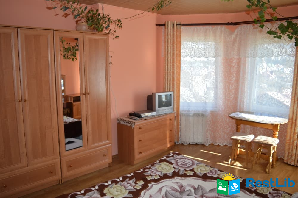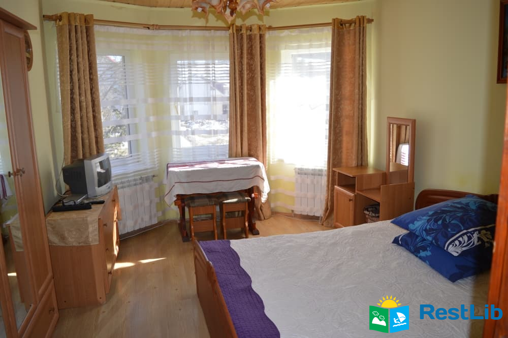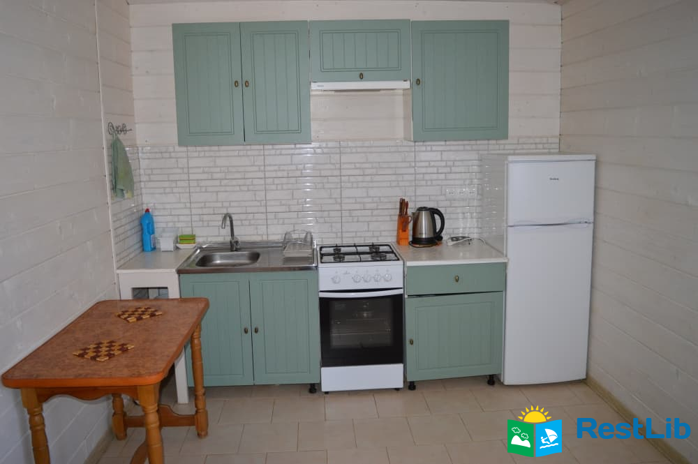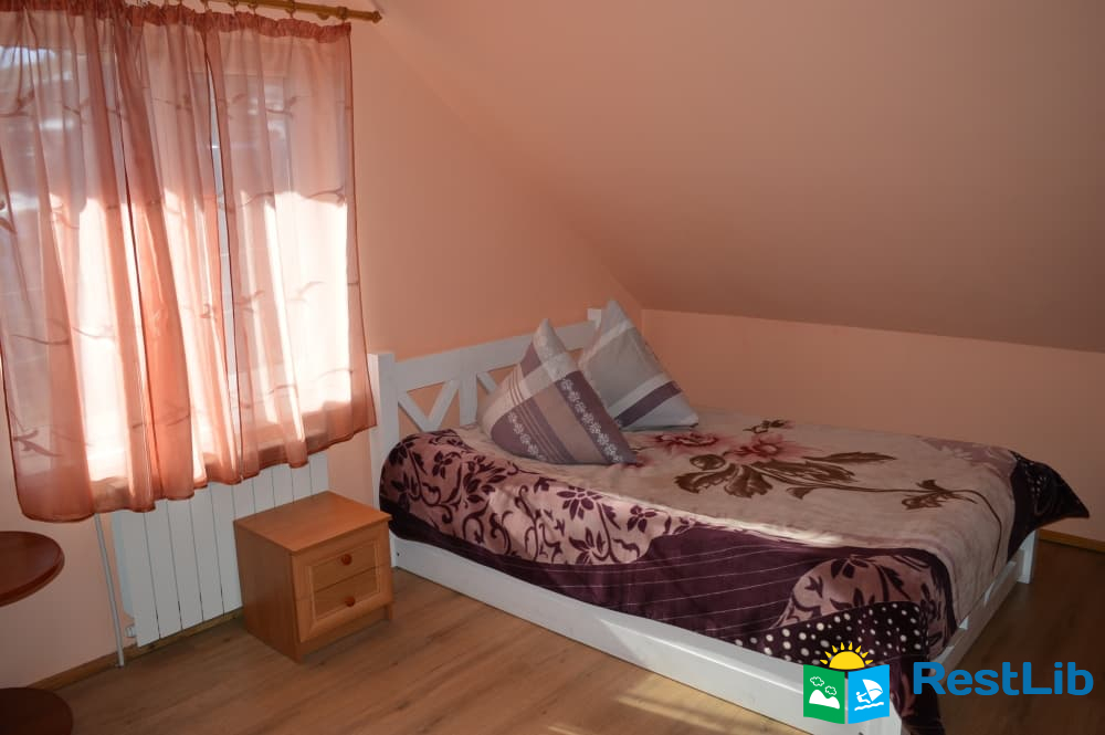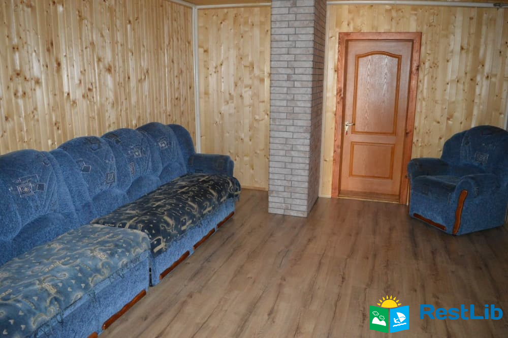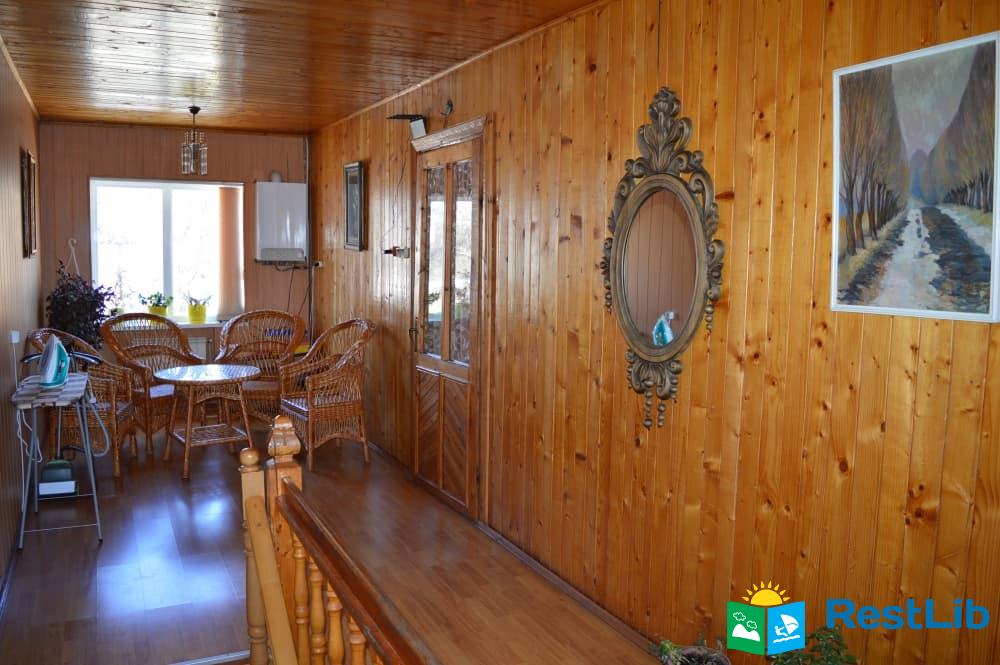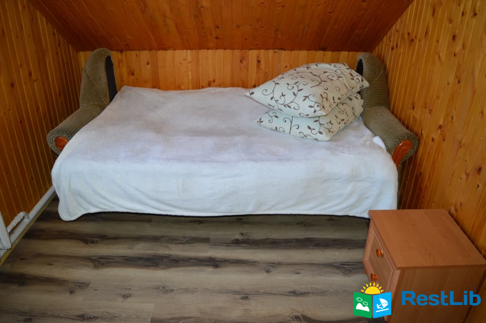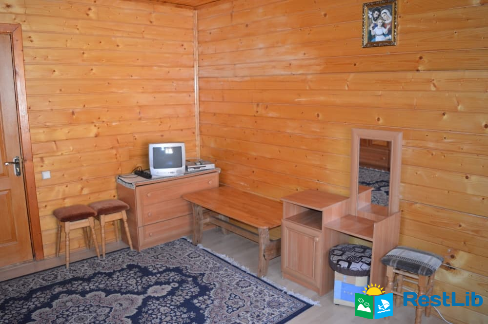 Один будинок знадється повністю на 8 осіб, без господарів. Перший поверх : кухня-столова (кухонний гарнітур, техніка, посуд, обідній стіл), два двомісні номери, роздільний санвузол . Другий поверх : два одномісні номери, одни двомісний з окремими ліжками.