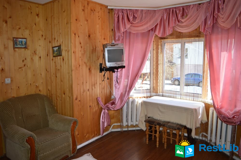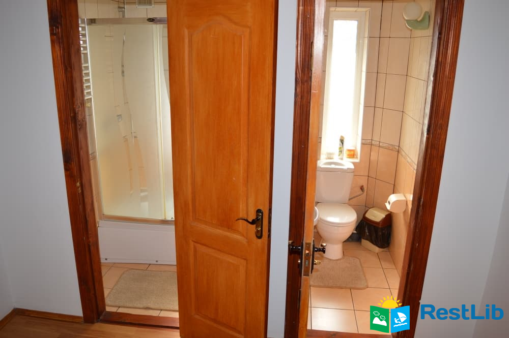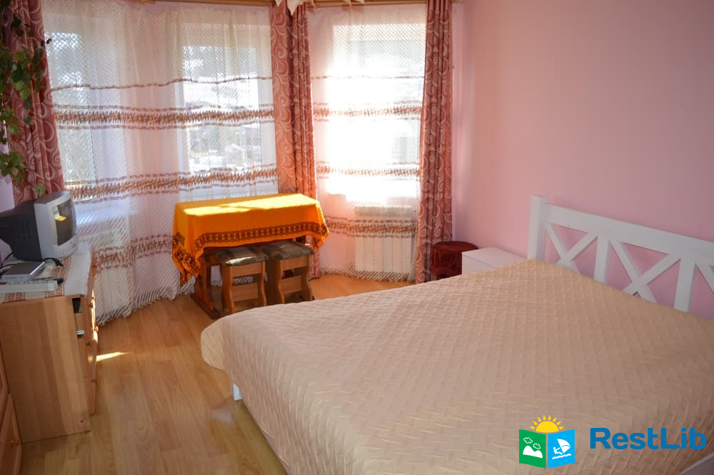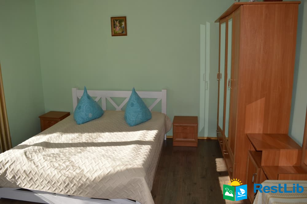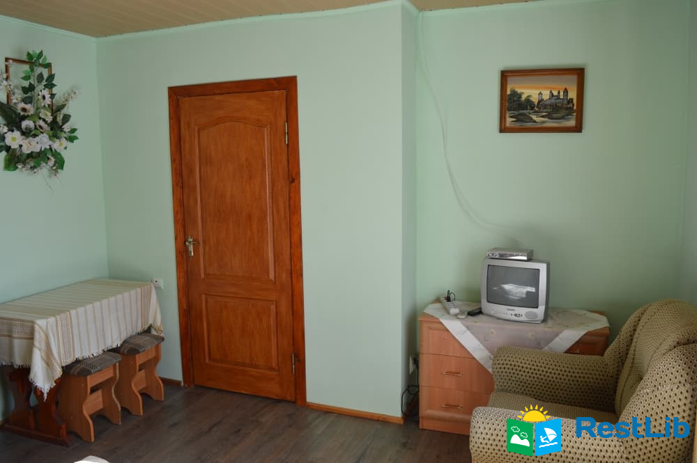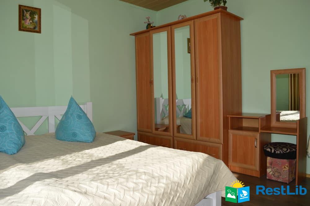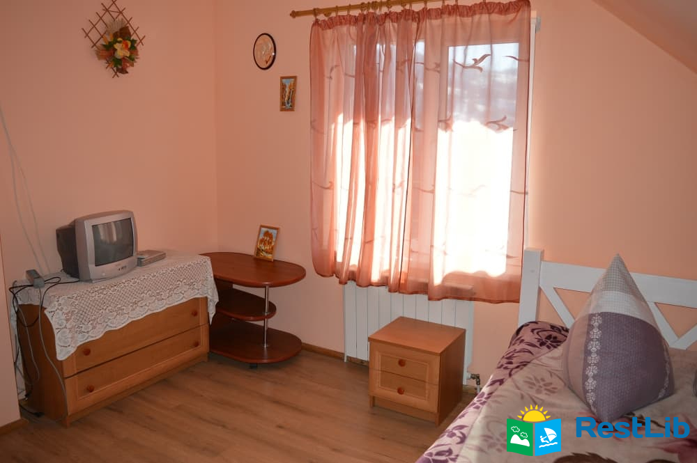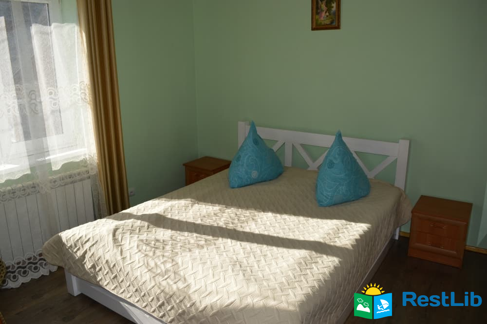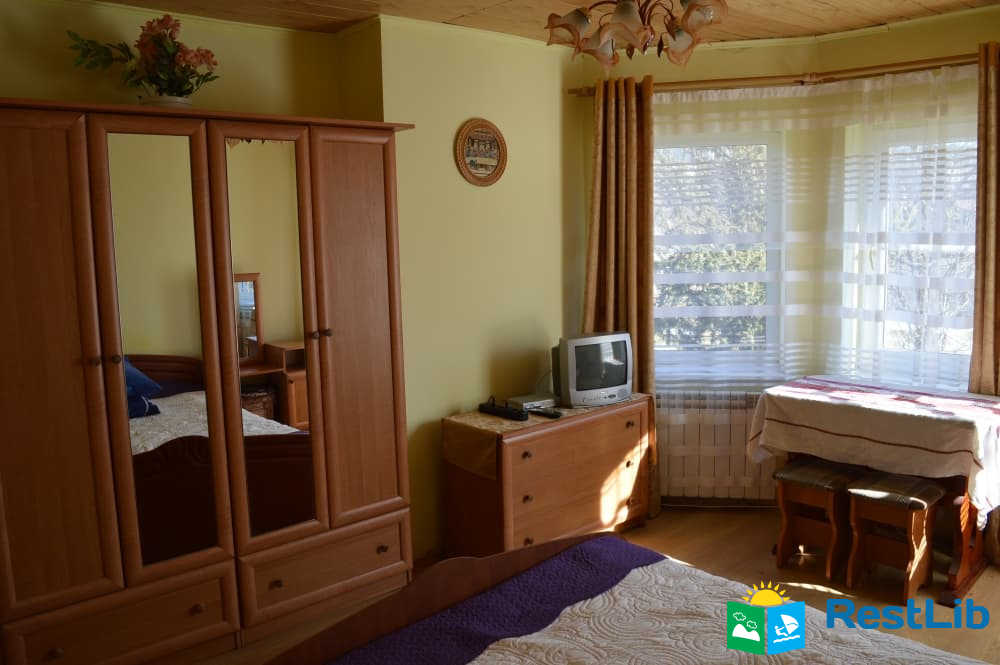 Один будинок знадється повністю на 8 осіб, без господарів. Перший поверх : кухня-столова (кухонний гарнітур, техніка, посуд, обідній стіл), два двомісні номери, роздільний санвузол . Другий поверх : два одномісні номери, одни двомісний з окремими ліжками.