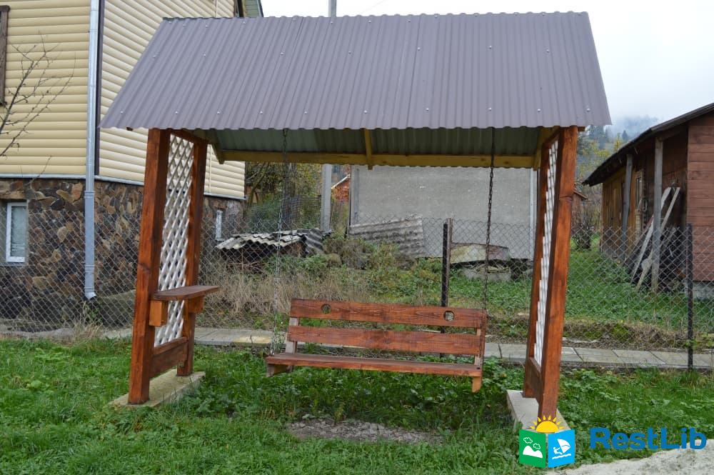 На другому поверсі також : хол-столова (стіл для малюків) з великими вікнами. Біля будинку стоїть стіл з лавками, мангал, гойдалка.