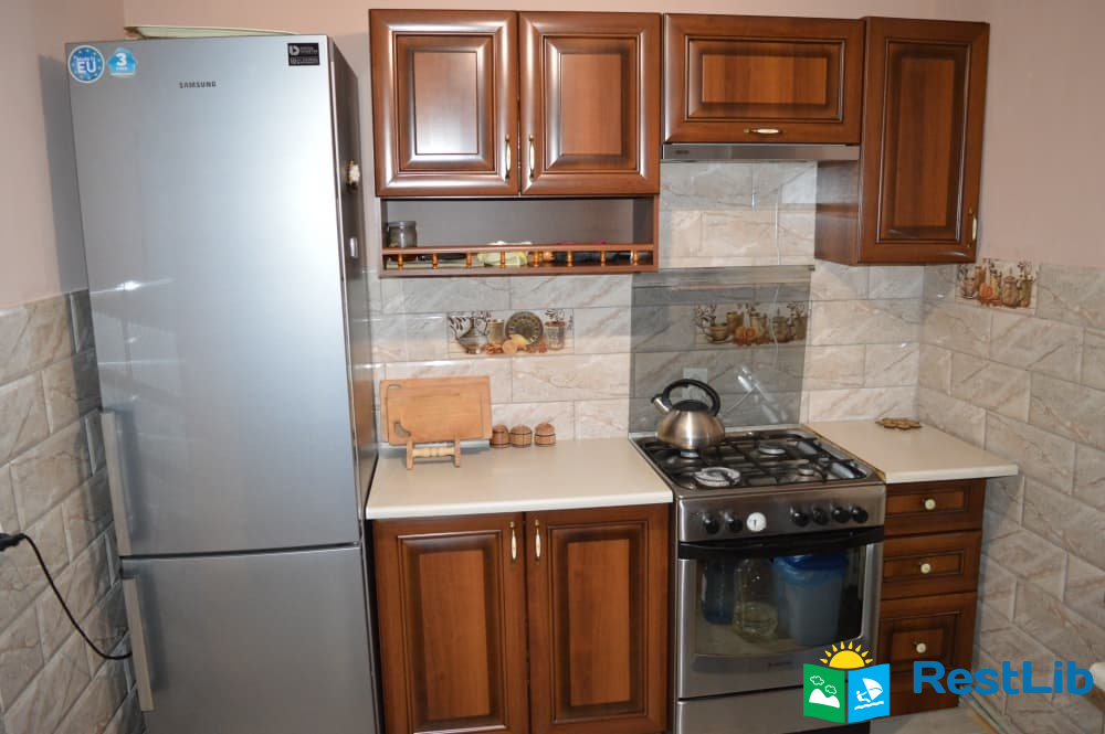 Кухня укомплектова всім необхідний для приготування їжі ( кухонний гарнітур, посуд, техніка)