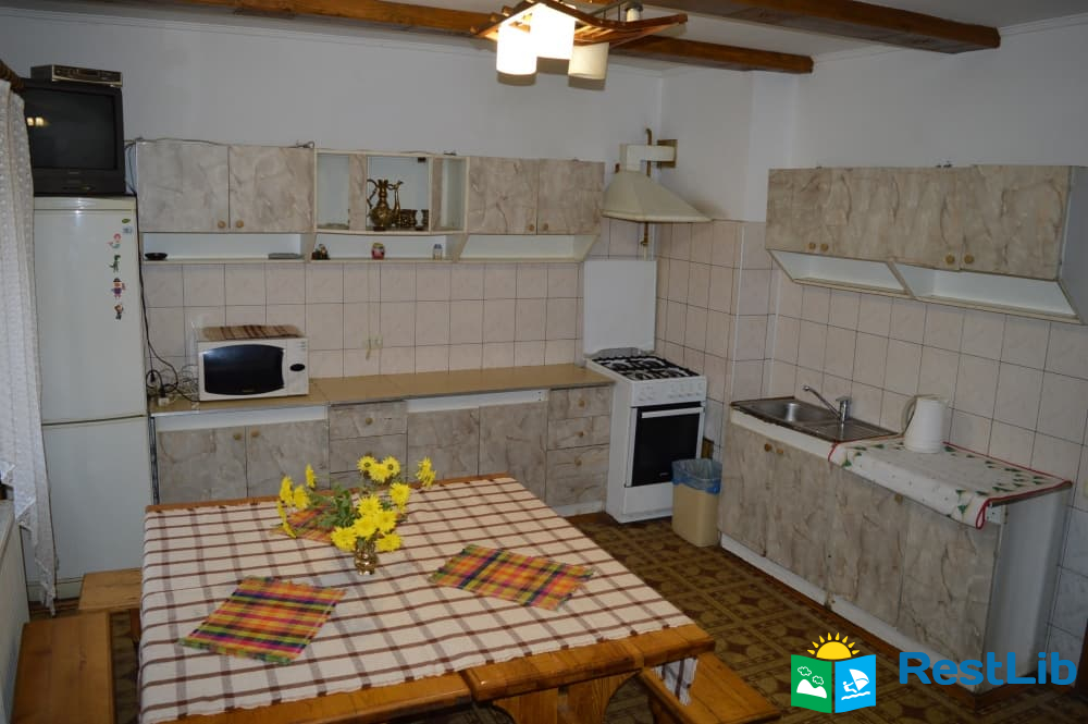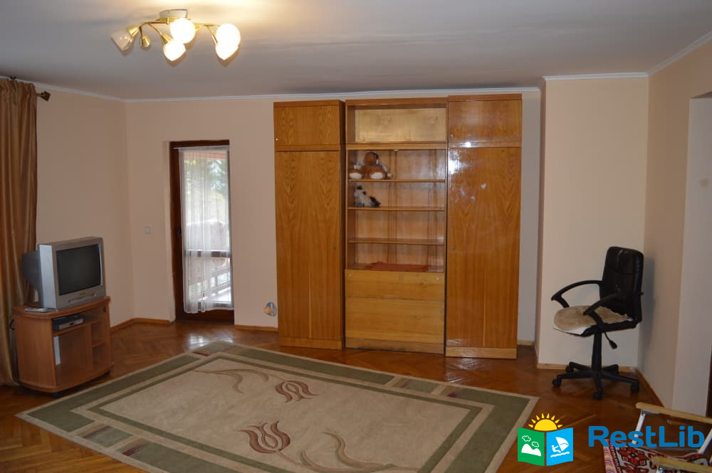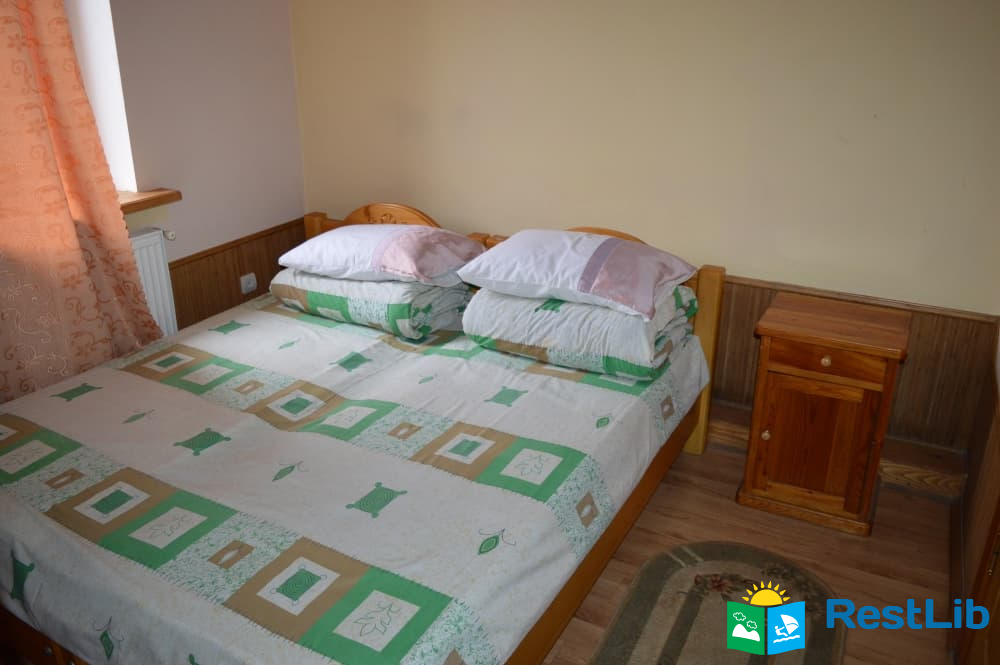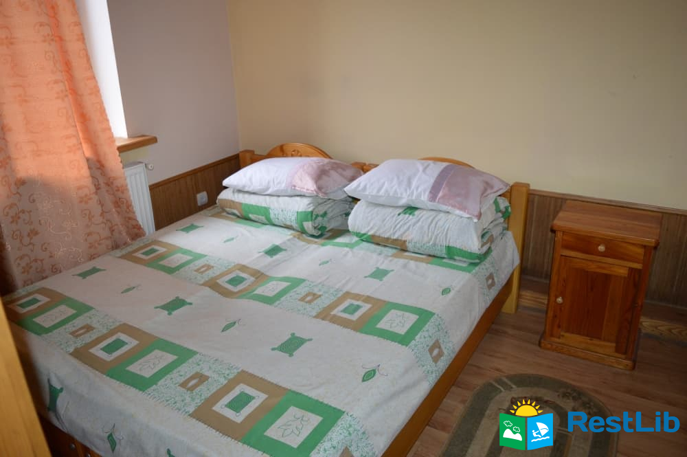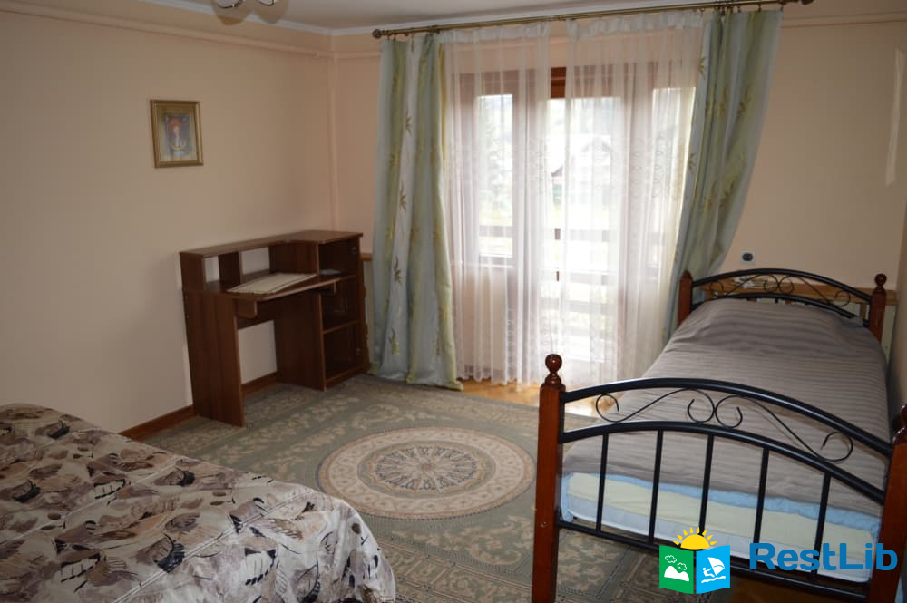 Другий поверх будинку на 10 осіб (на першому живуть господарі). Орієнтовну вартість вказано за 10осіб. Точну ціну на ваші дати уточнюйте за телефоном. Можливе поселення меншої кількості осіб за меншу вартість. - На поверсі: хол і 3 кімнати (2 суміжні на 3 особи і одна на дві-чотири особи.) Кухня і столова знаходяться на першому поверсі. На три кімнати спільні 2 душі і 3 туалети.