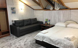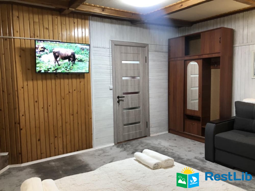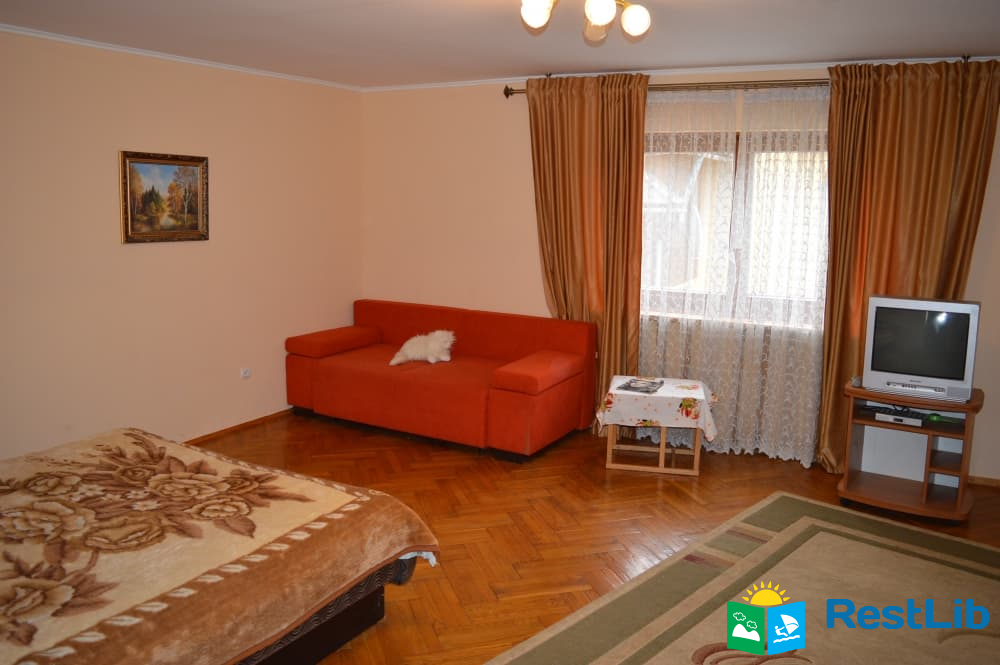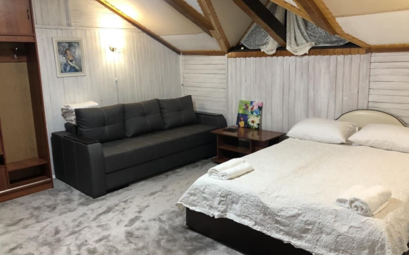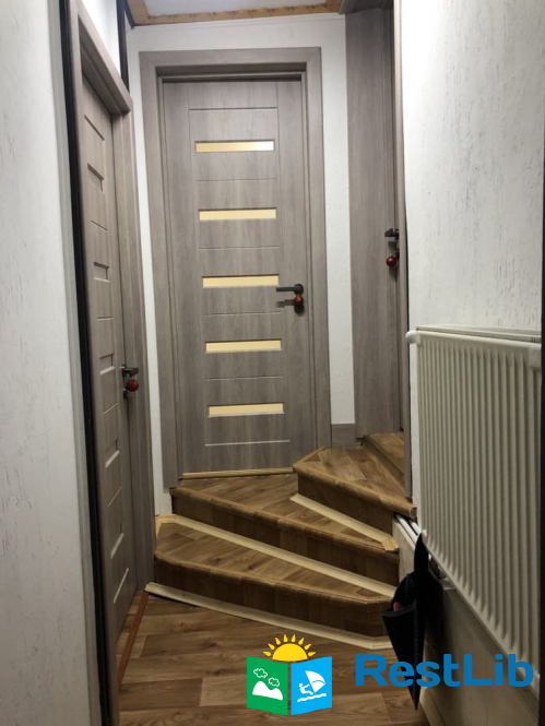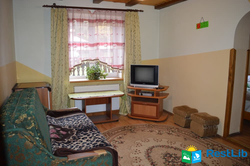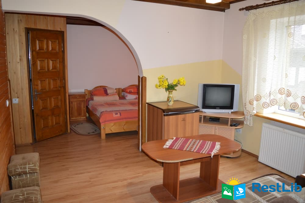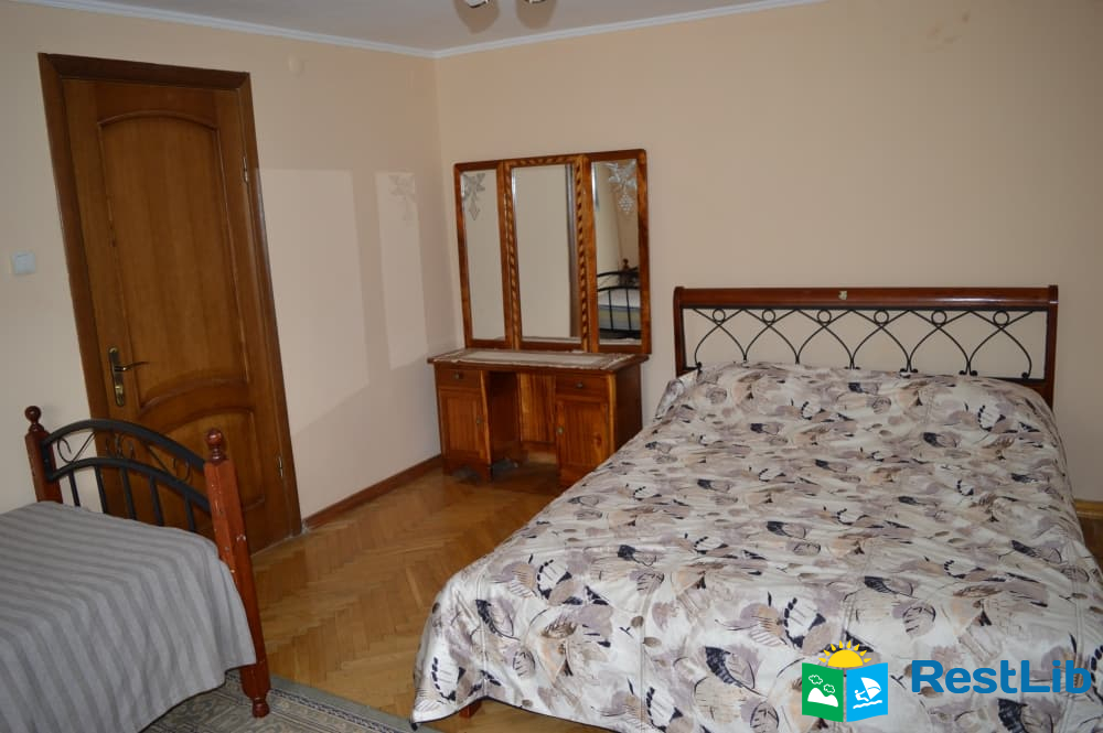 Другий поверх будинку на 10 осіб (на першому живуть господарі). Орієнтовну вартість вказано за 10осіб. Точну ціну на ваші дати уточнюйте за телефоном. Можливе поселення меншої кількості осіб за меншу вартість. - На поверсі: хол і 3 кімнати (2 суміжні на 3 особи і одна на дві-чотири особи.) Кухня і столова знаходяться на першому поверсі. На три кімнати спільні 2 душі і 3 туалети.