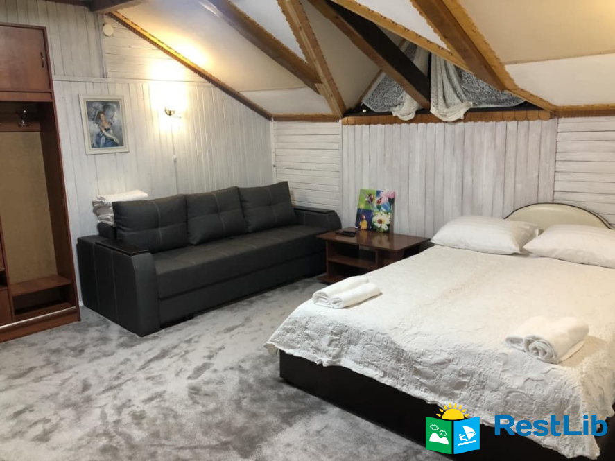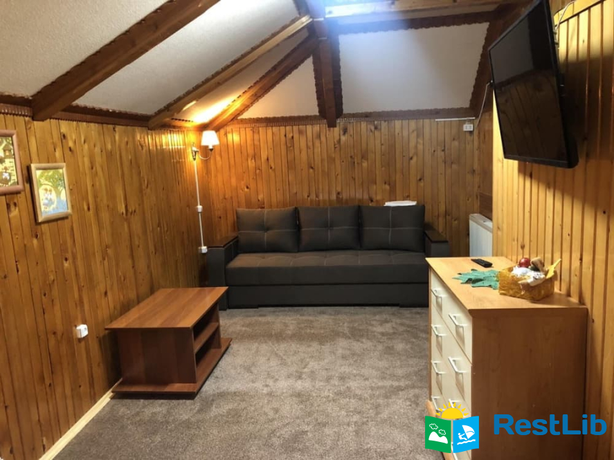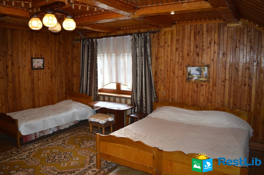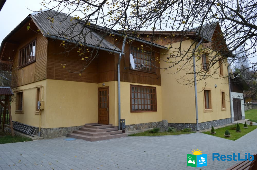 Двоповерховий котедж на 20 осіб. Орієнтовну вартість вказано за 20осіб. Точну ціну на ваші дати уточнюйте за телефоном. Можливе поселення меншої кількості осіб за меншу вартість. - Будинок складається з 7-ми кімнат. (3 чотиримісні з санвузлами, та 4 двомісні з загальним санвузлом) - На першому поверсі: кухня-столова, дві кімнати на 2-4 особи з власними санвузлами, загальний роздільний санвузол (душова кабіна, умивальник і туалет). На другому поверсі: одна кімната на 2-4 особи з власним санвузлом, чотири кімнати на двох (двоспальне або односпальні ліжка) з роздільним санвузлом на поверсі (умивальник і біде, умивальник і туалет). В двох кімнатах вихід на лоджію.