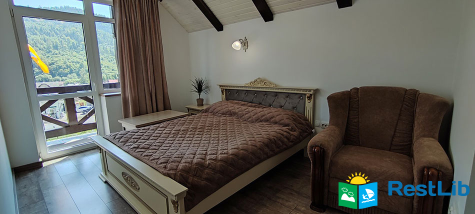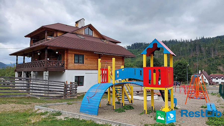 На території розташовані 2 триповерхові будинки, дитячий майданчик, магазин, прокат гірськолижного спорядження.
