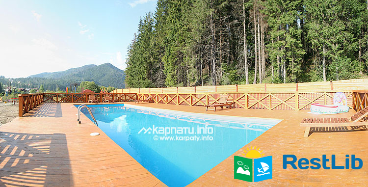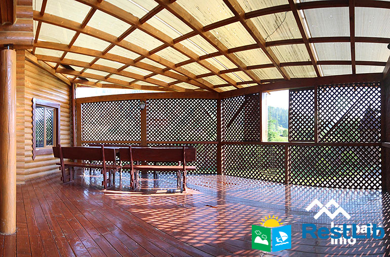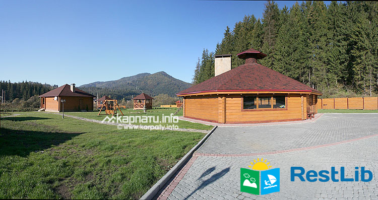 На території комплексу знаходиться 4 двоповерхові дерев'яні котеджі (на 8 осіб), котедж на 10 осіб, колиба, сауна, відкритий басейн, дитячий майданчик.