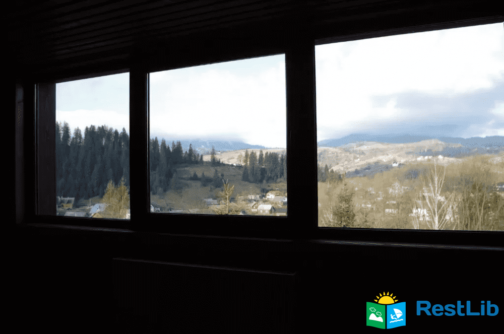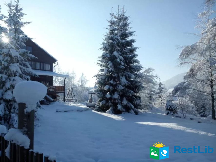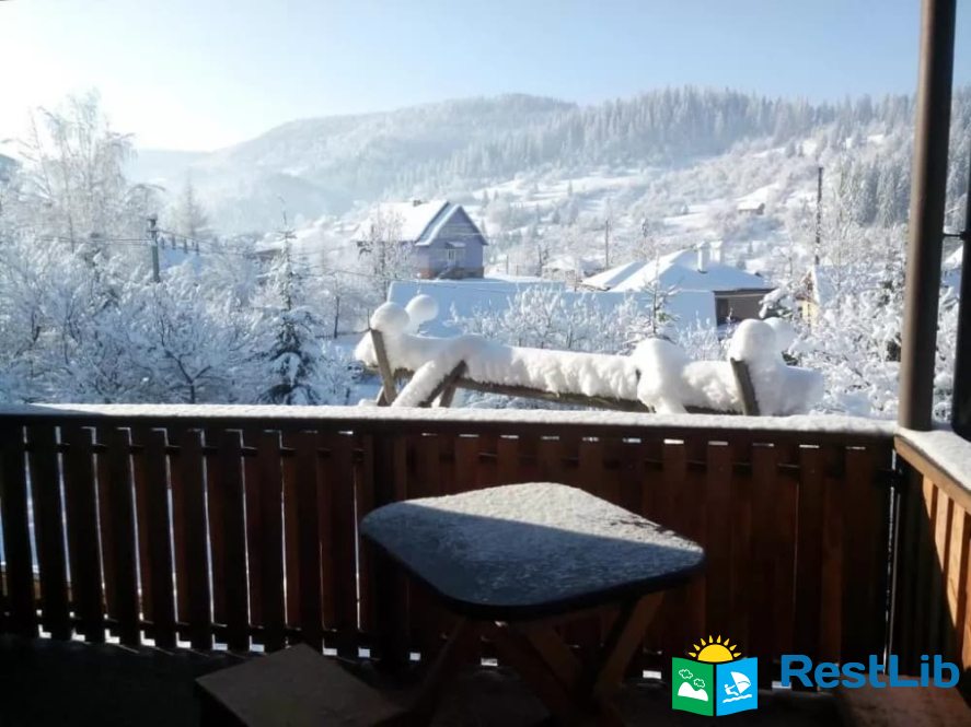 • велика крита тераса з видом на гору Тростян та інші гори.