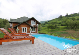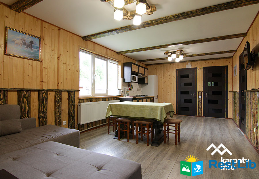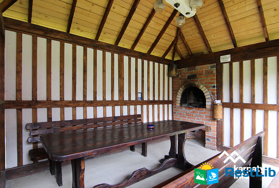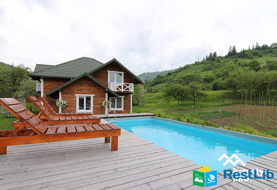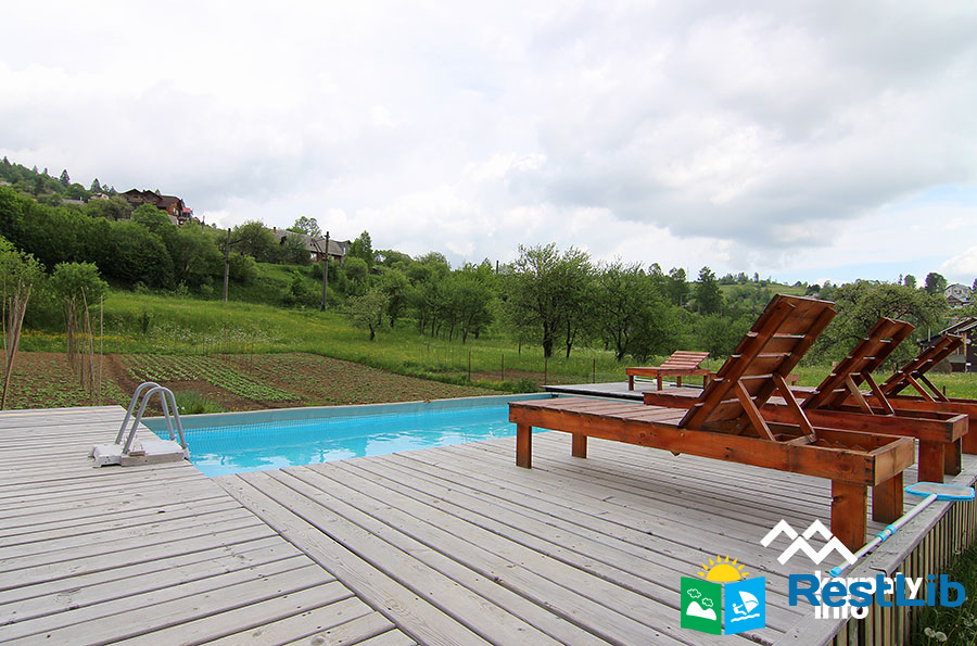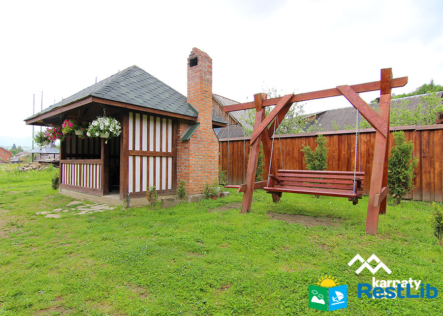 На території розташований двоповерховий котедж на 2 номери, альтанка з мангалом, літній басейн, дитячий майданчик.
