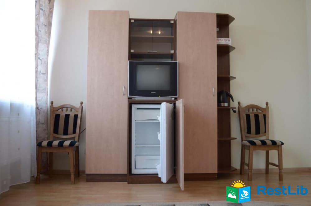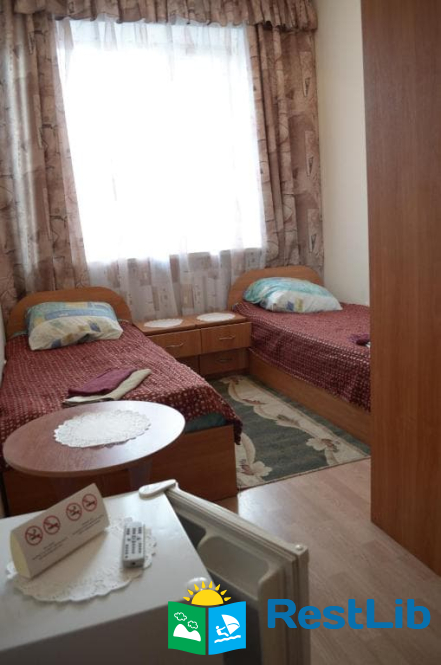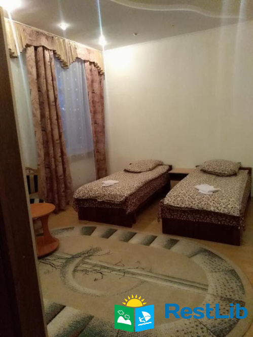 6 двомісних номерів площею 12м² з санвузлом. - В номері: два односпальних ліжка, шафа для одягу, холодильник, телевізор, журнальний столик.