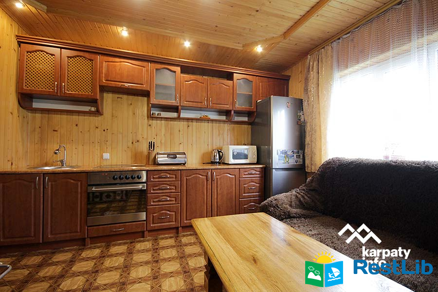 На першому поверсі: кухня, вітальня, двомісний номер, санвузол.
