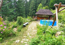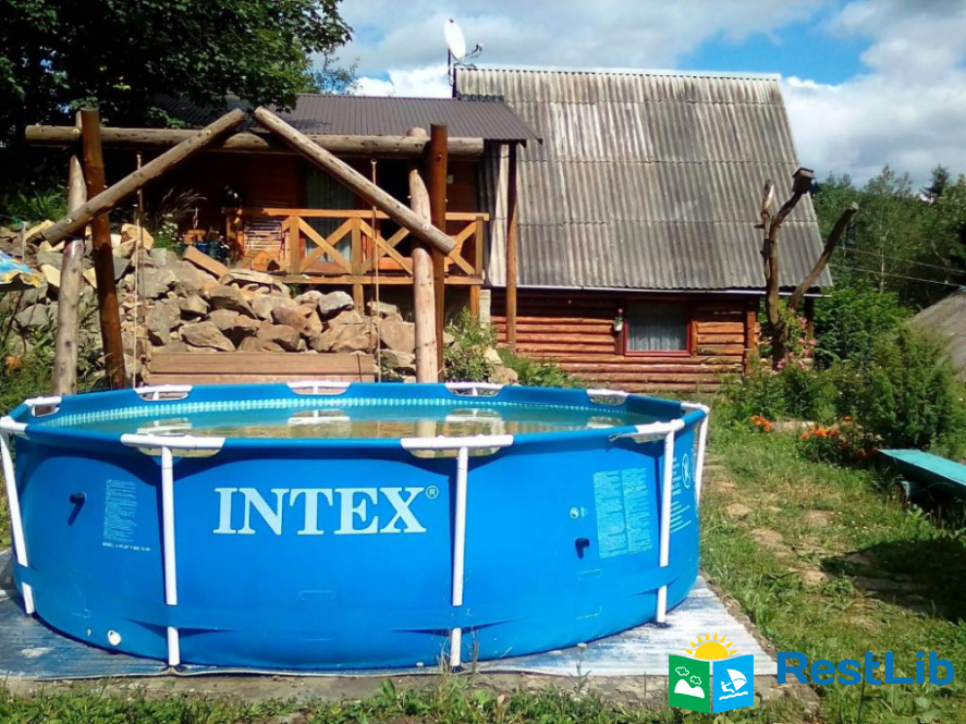 У котеджі є 3 спальні, 2 ванні кімнати, обідня зона, повністю обладнана міні-кухня та патіо з сезонним басейном. Також є місце для паркування авто та чан.