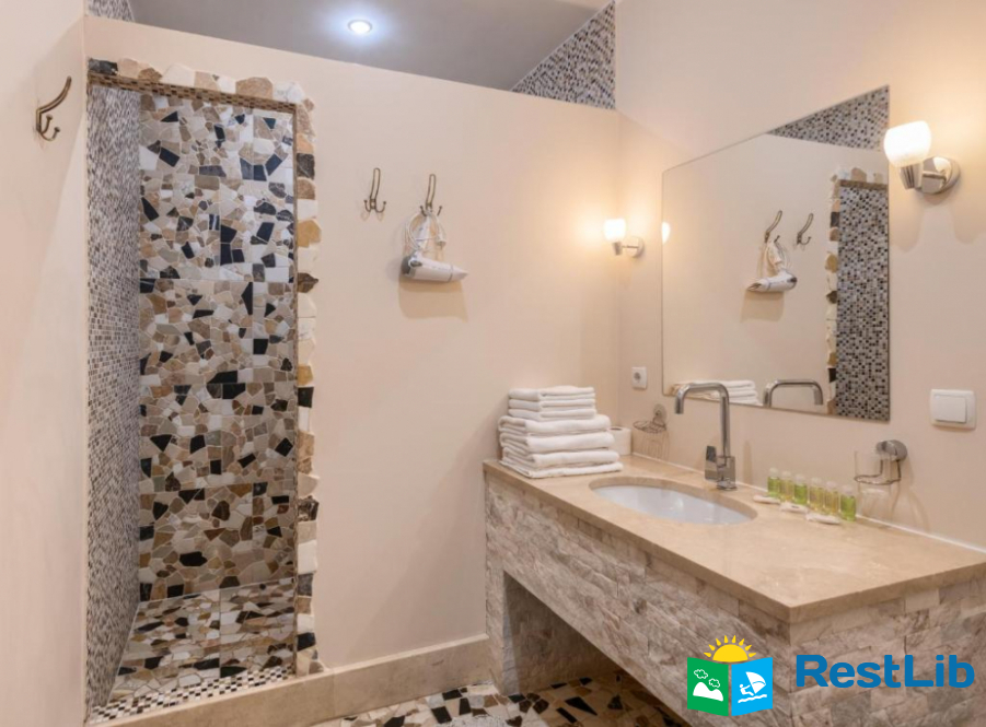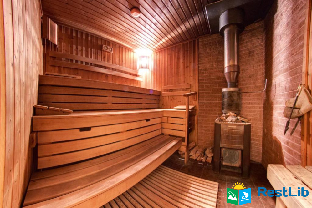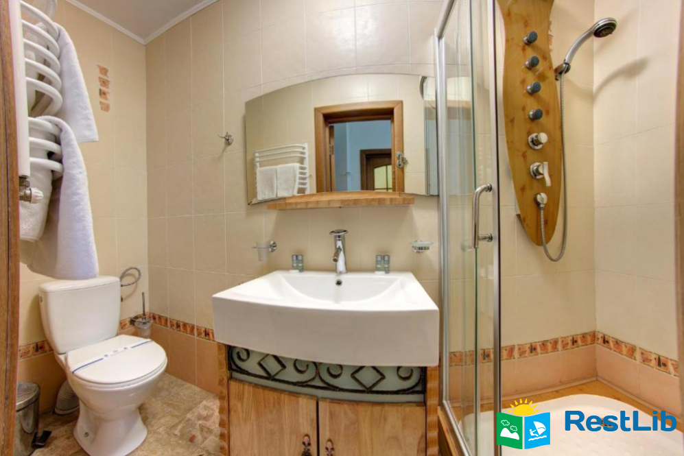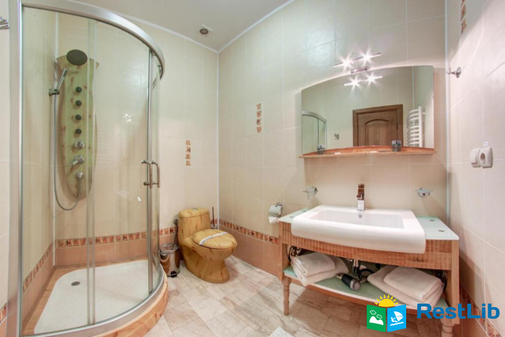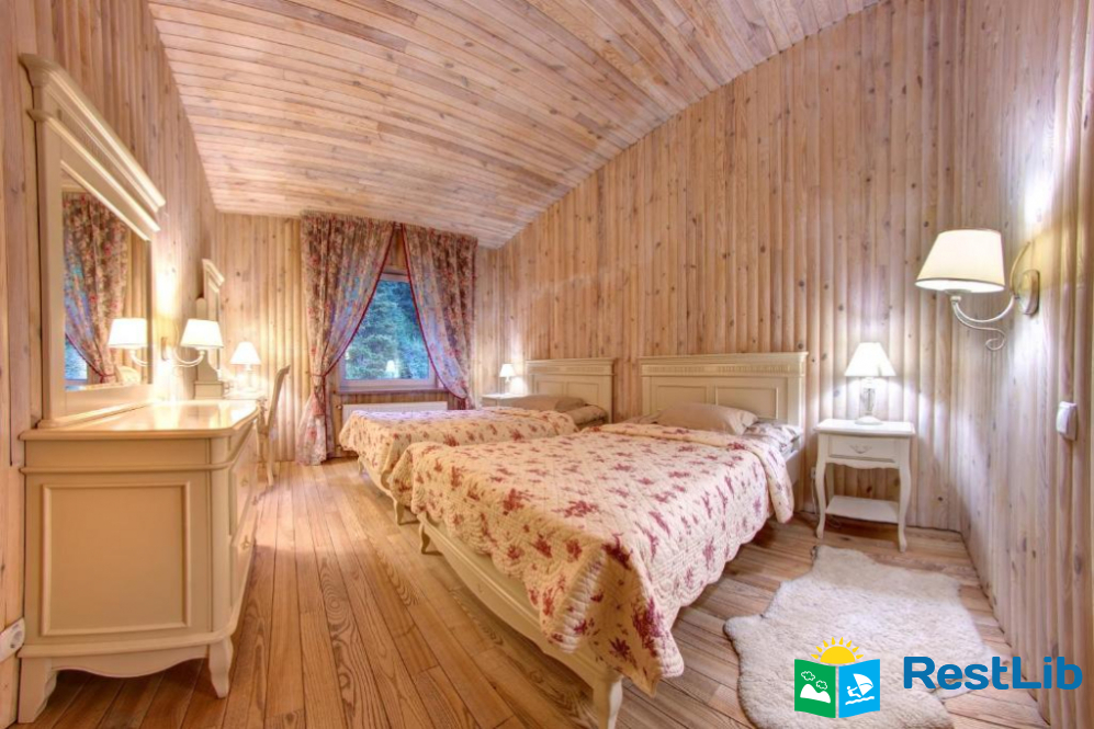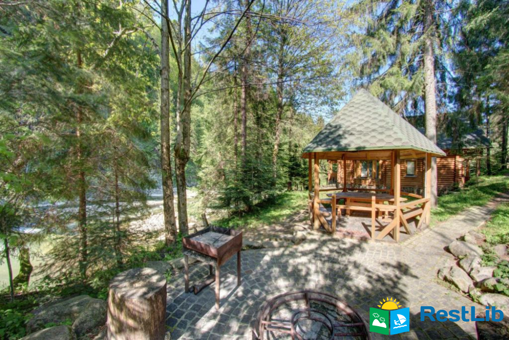 Окремий двоповерховий будинок з італійським і національним декором для відпочинку великою компанією друзів. Наявна простора кухня з усім необхідним обладнанням. На першому поверсі є кімната відпочинку, з плазмовим телевізором і каміном. У будинку так само знаходиться два санвузли, з обробкою з мармуру.