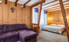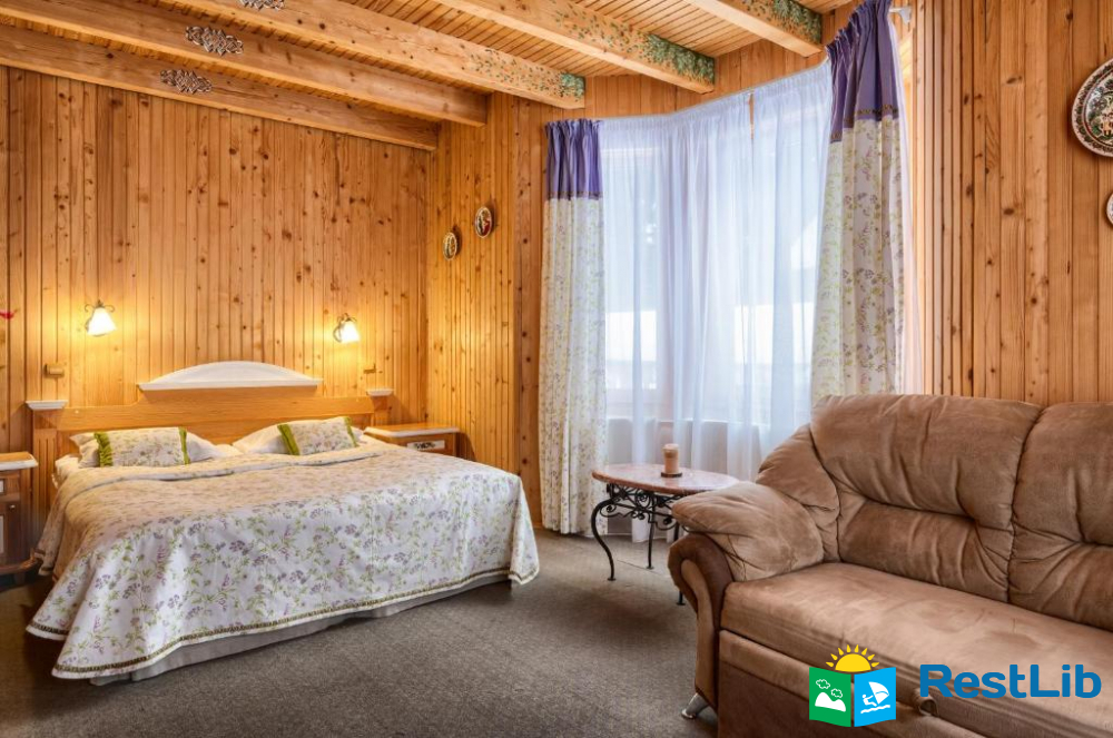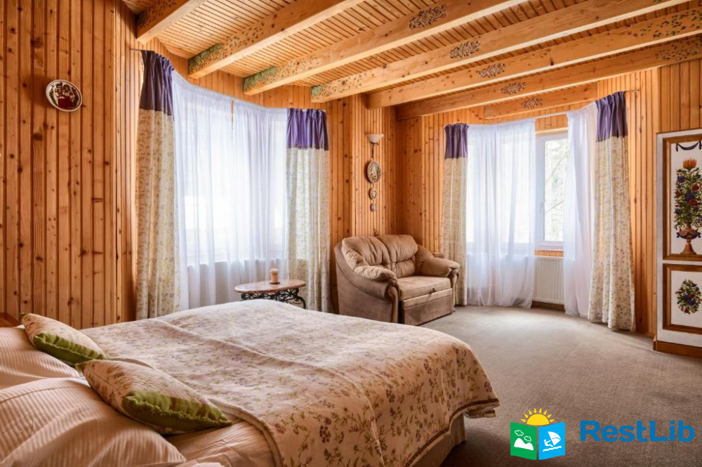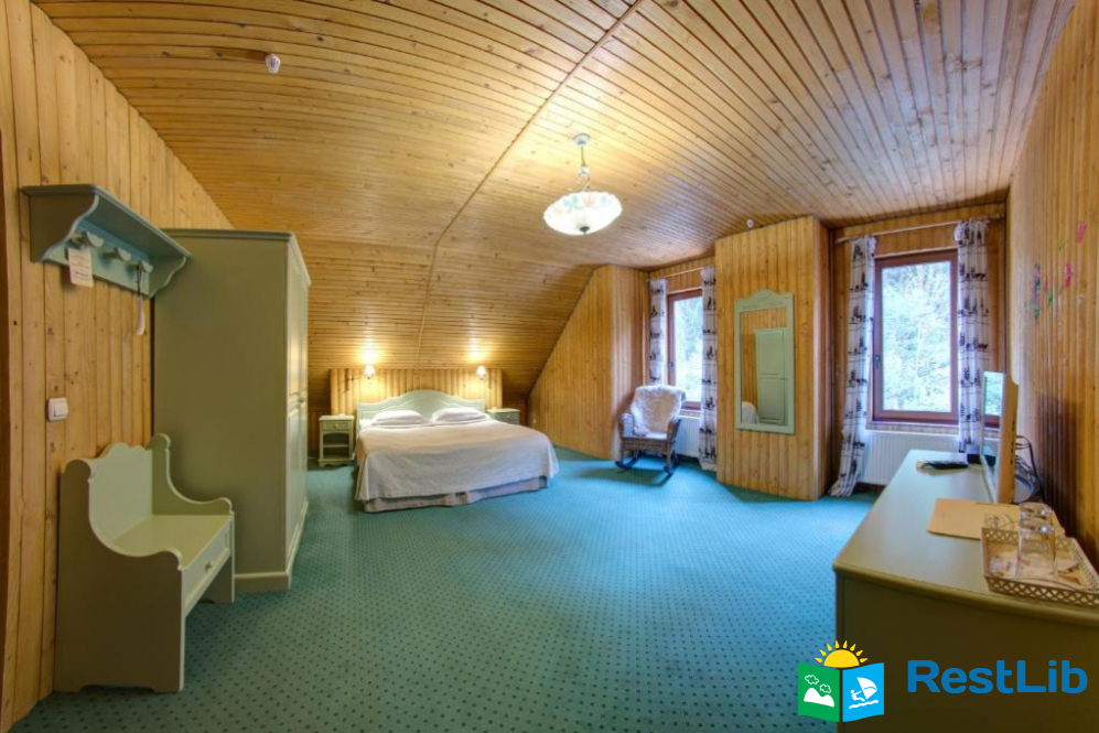 Просторий однокімнатний номер, в дерев’яній обробці, в класичному стилі (в будівлі рецепції) в якому Ви знайдете все необхідне для гарного відпочинку.