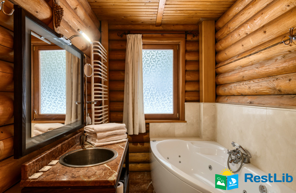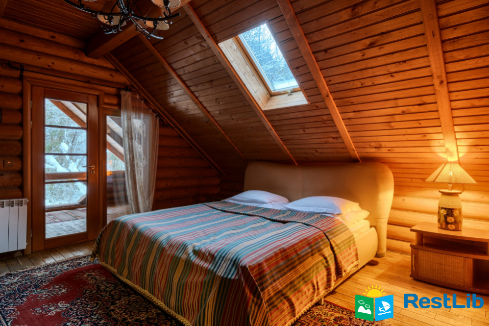 Окремий двоповерховий будиночок з видом на річку для великої компанії. З великою вітальнею, камінним залом, м’якими меблями, двома спальнями, сучасною технікою та двома санвузлами, один з яких оснащений ванною.