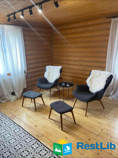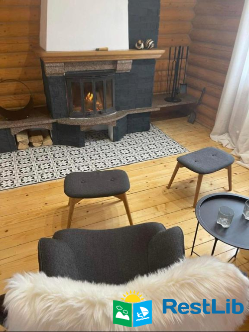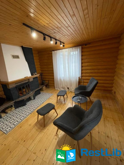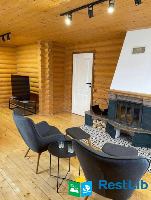 Вітальня-студія обладнана каміном, диваном, ергономічними скандинавськими лаунж-кріслами, 55-дюймовим Smart TV з підписками Netflix, Megogo, Youtube.