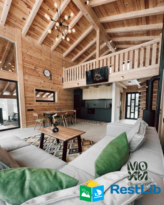 - складається з просторого залу з кухнею, де висота стелі сягає 5 метрів