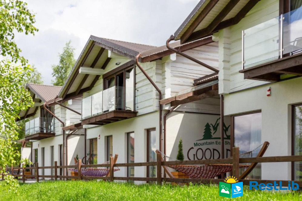 На території комплексу GOOD DAYS розміщується окремі котеджі, оформлені у різних стилях. Також є місце для приготування барбекю, дитячий майданчик, парковка.