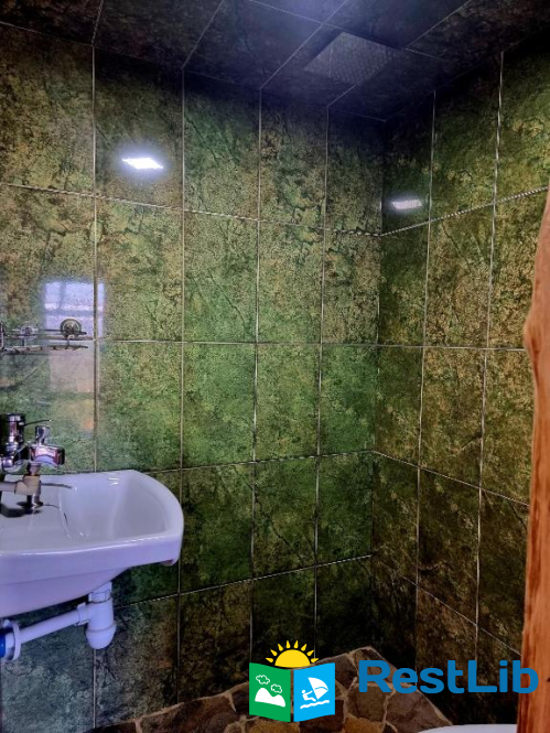 • душ з теплою підлогою, туалет (в будинку), рушники, одноразові тапочки.