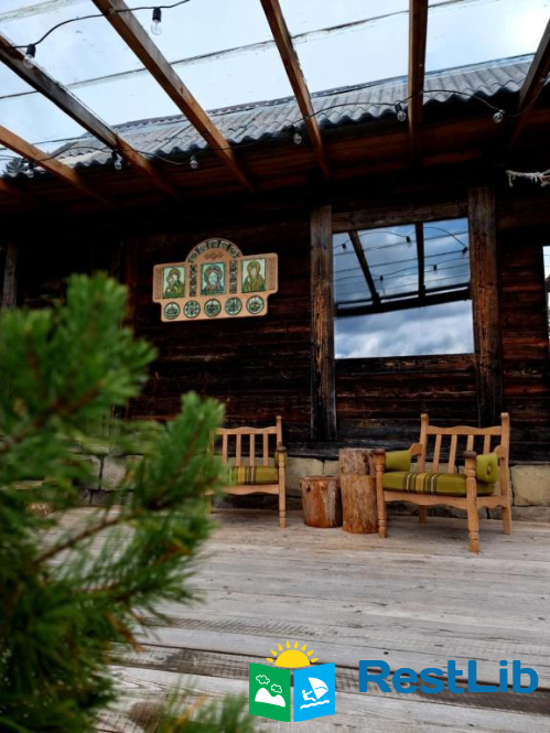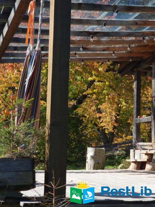 • велика крита тераса, на краю якої є велика ванна, яка підігрівається як чан, крісла, гамак.