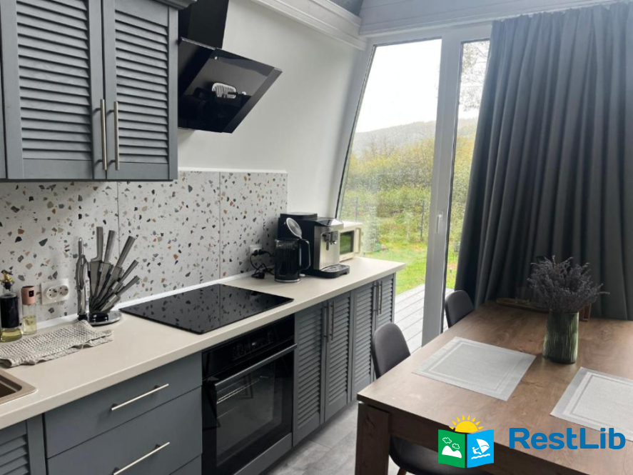 Котеджі облаштовані усім необхідним для комфортного перебування, починаючи від повністю укомплектованої кухні для приготування їжі й закінчуючи новими та зручними меблями.