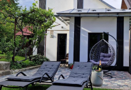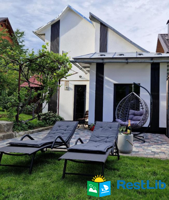 До послуг гостей входить альтанка з каміном (мангал), безкоштовна парковка та wi-fi в котеджі. Дизайнерський ремонт завершено в листопаді 2023року. В котеджі є затишна кухня з усім необхідним посудом для самостійного приготування їжі, 2 санвузли, 2 спальні та 2 вітальні з TV і зручними диванами.