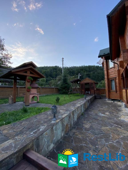 На території розташовано: терасса, гойдалка, дерев’яна альтанка, мангал для грилю, криниця з чистою водою, лежаки для засмаги.