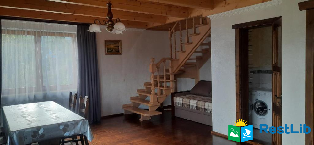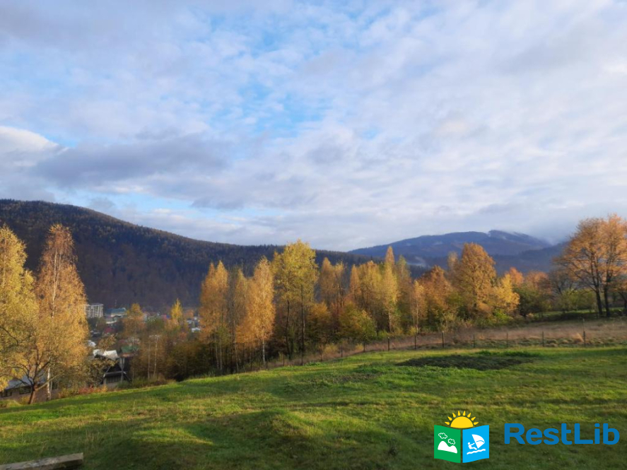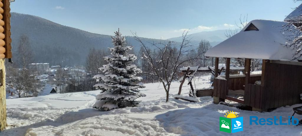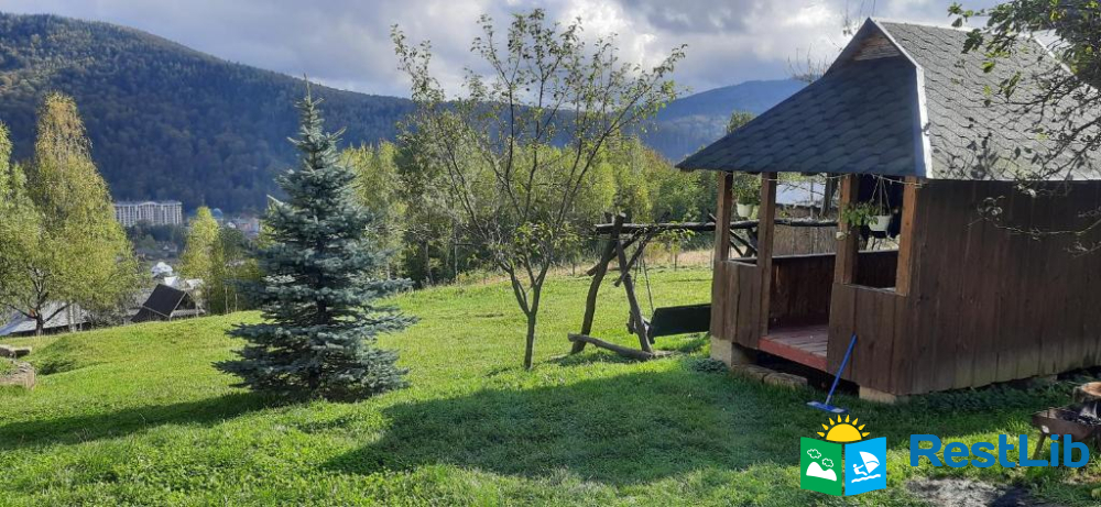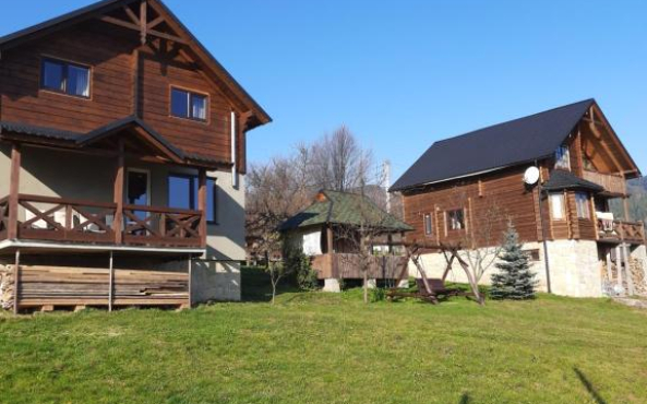 Натуральне дерево, меблі з різних порід дерев, неподалік ліс, велика територія, краєвид на гори та на скелю Слон, панорама на місто Яремче та гору Маковицю.