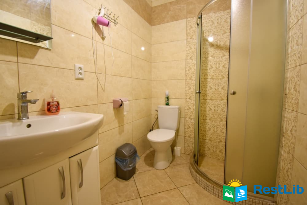 Просторий будинок з усім необхідним. На першому поверсі будинку: велика кухня на весь будинок, столова, просторий хол з каміном та музичним центром, дві двомісні кімнати з власним санвузлом. На другому поверсі: два загальних санвузли, три двомісні кімнати, дві тримісні кімнати, двокімнатний номер на 6 осіб.