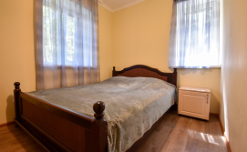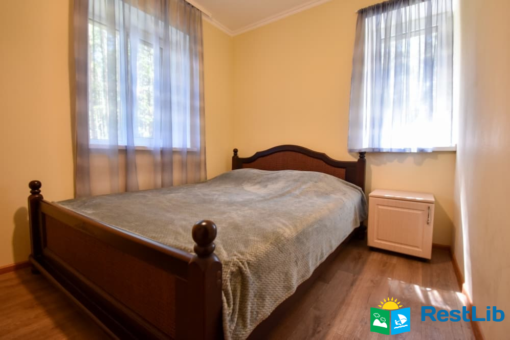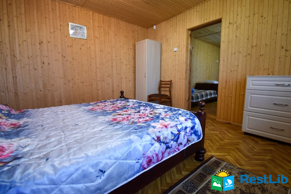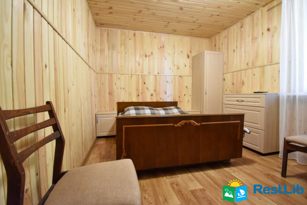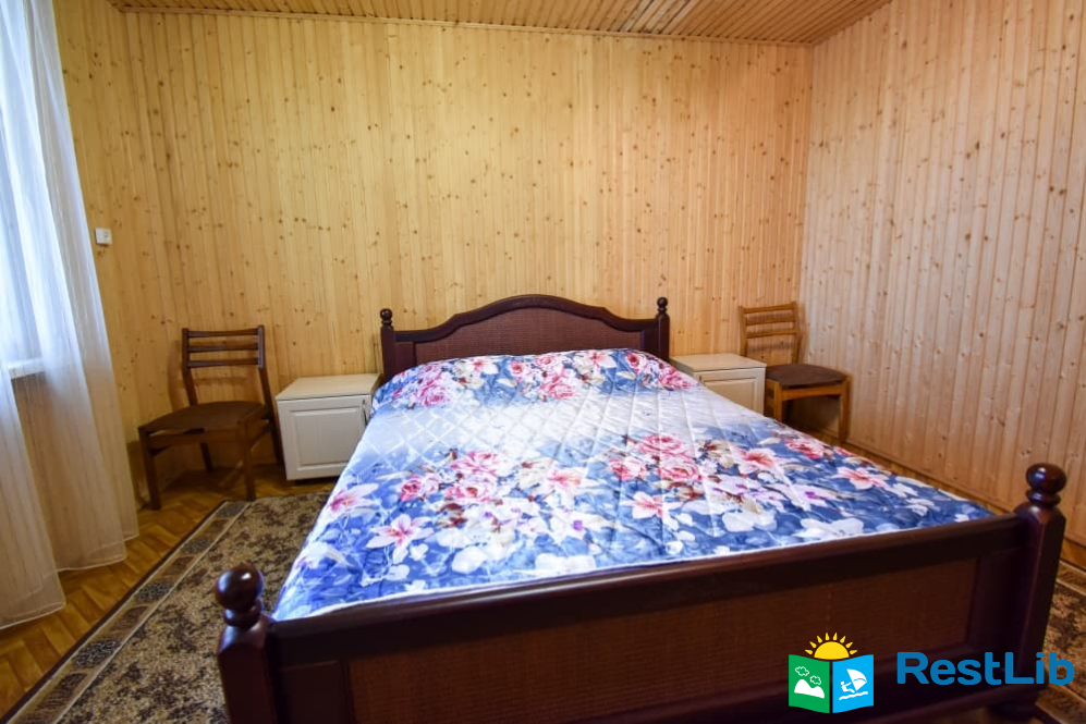 Двокімнатний номер на другому поверсі у будинку. В першій кімнаті є 4 односпальних ліжка, телевізор, шафа, комод, тумбочки, стільці, поличка для взуття. В другій кімнаті знаходиться двоспальне ліжко, тумбочки, стільці, комод, шафа. Два спільних санвузли знаходяться на поверсі. Кухня спільна для всього дому.