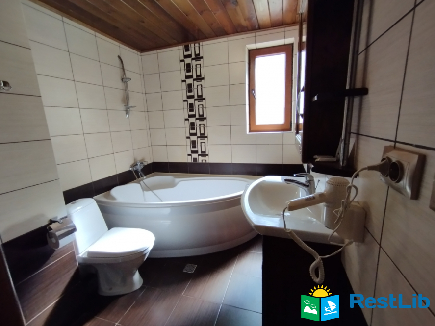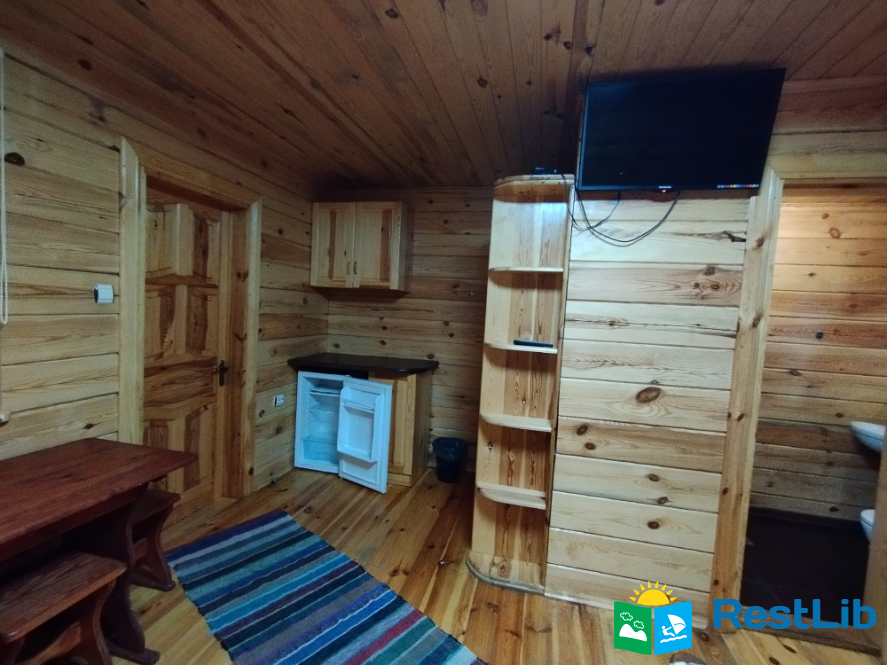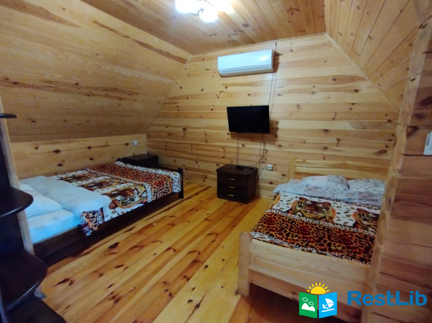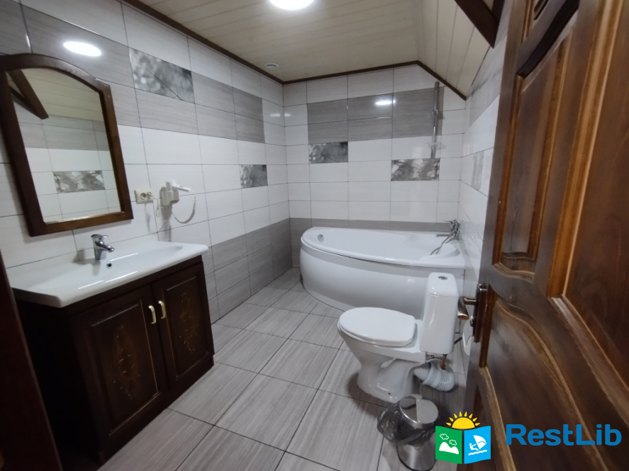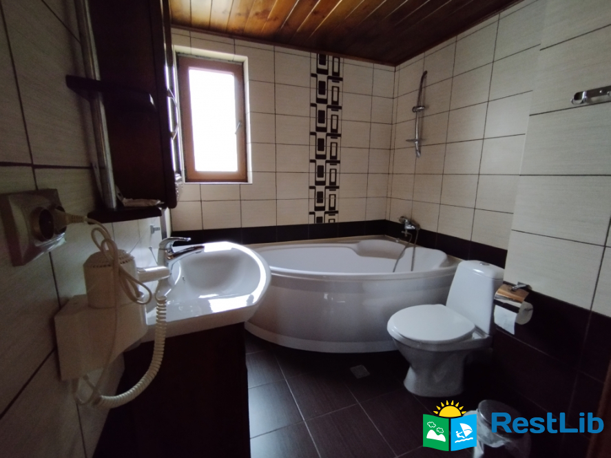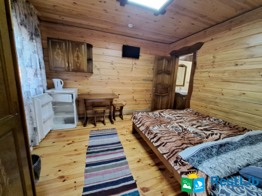 Просторий двохкімнатний номер з власним балконом, знаходиться на третьому поверсі. В першій кімнаті: двоспальне ліжко, шафа, стіл на 6 персон, кондиціонер, кухня (електроплита, холодильник, чайник, мийка, набір посуду на 6 персон). В другій кімнаті: кондиціонер, телевізор Т2, два двоспальних ліжка, шафа, тумбочки, вихід на балкон. Санвузол (ванна, туалет, умивальник)