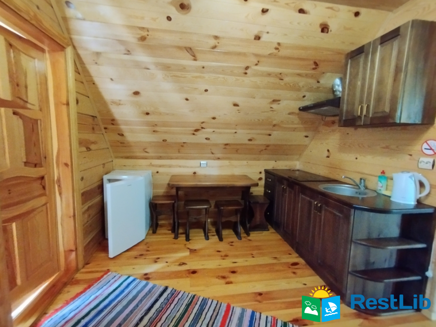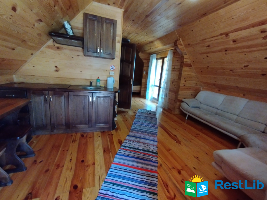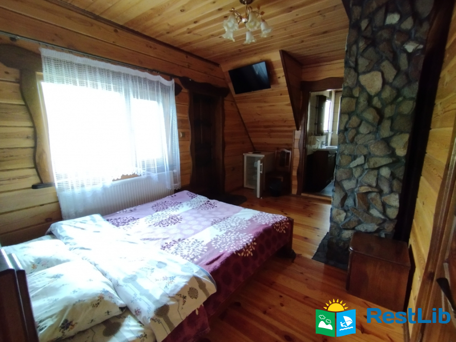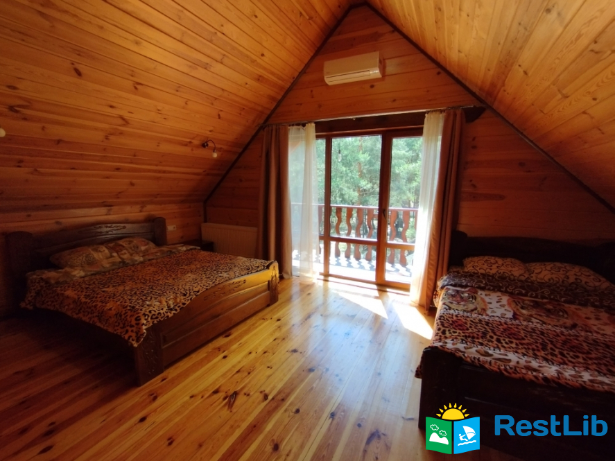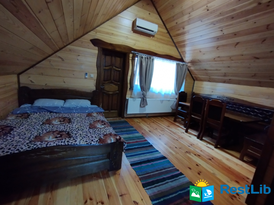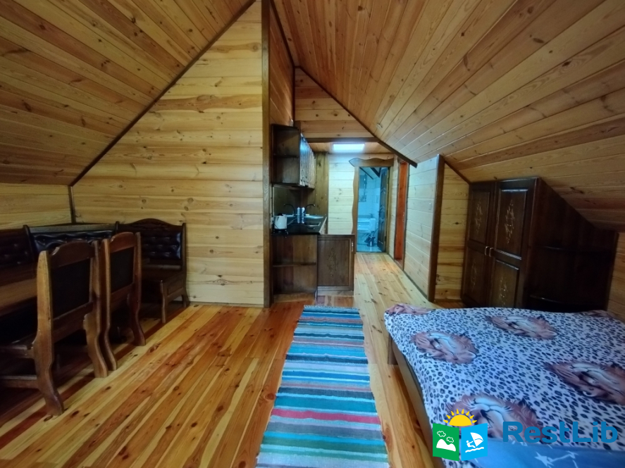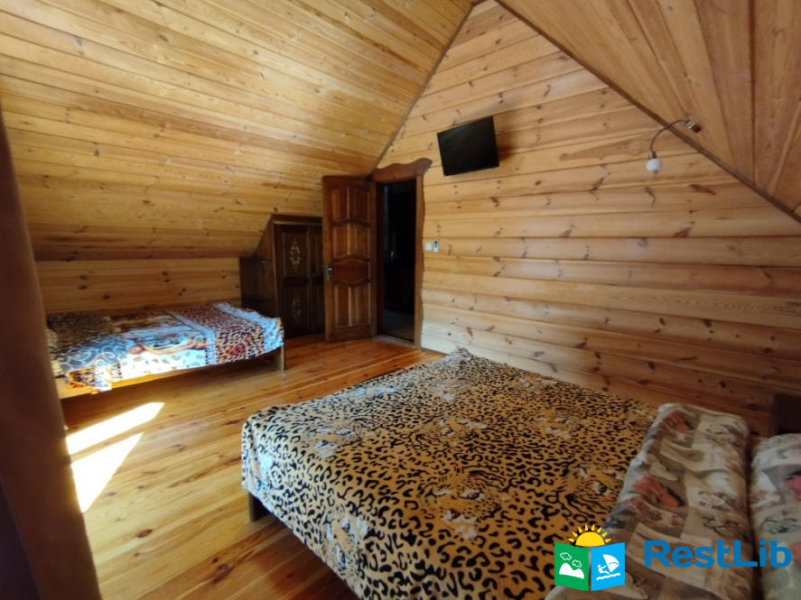 Просторий двохкімнатний номер з власним балконом, знаходиться на третьому поверсі. В першій кімнаті: двоспальне ліжко, шафа, стіл на 6 персон, кондиціонер, кухня (електроплита, холодильник, чайник, мийка, набір посуду на 6 персон). В другій кімнаті: кондиціонер, телевізор Т2, два двоспальних ліжка, шафа, тумбочки, вихід на балкон. Санвузол (ванна, туалет, умивальник)