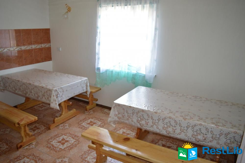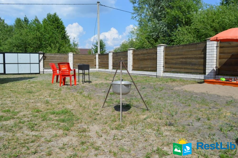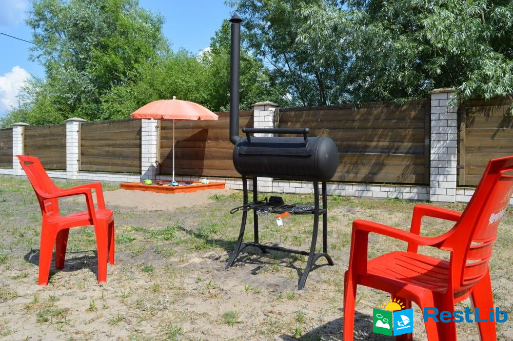 В кухні 2 сенсорних плитки, холодильник, раковини для миття посуду, мікрохвильова піч, електрочайники, духовка, 2 столи з лавками, 2 мангали з шампурами, казанок.