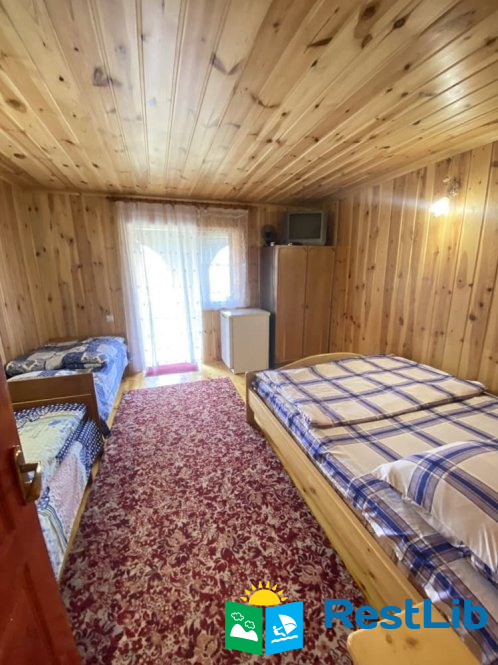 В 2 кімнатах 1 двоспальне і 1 односпальне ліжка, туалет з душем, телевізор, холодильник, шкаф.