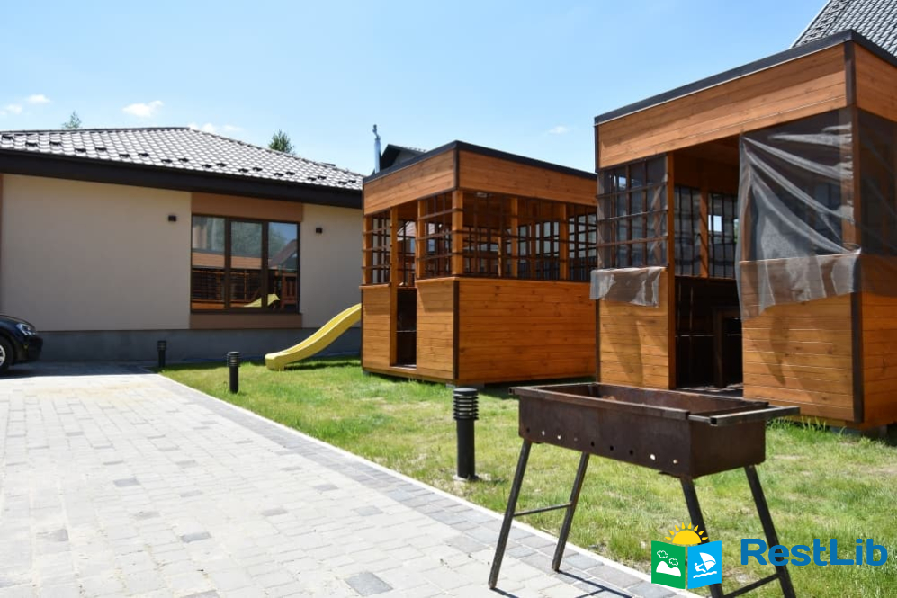 На території: альтанки з мангалами, одна велика крита альтанка з панорамними вікнами для великих компаній, місце для паркування авто.