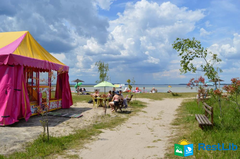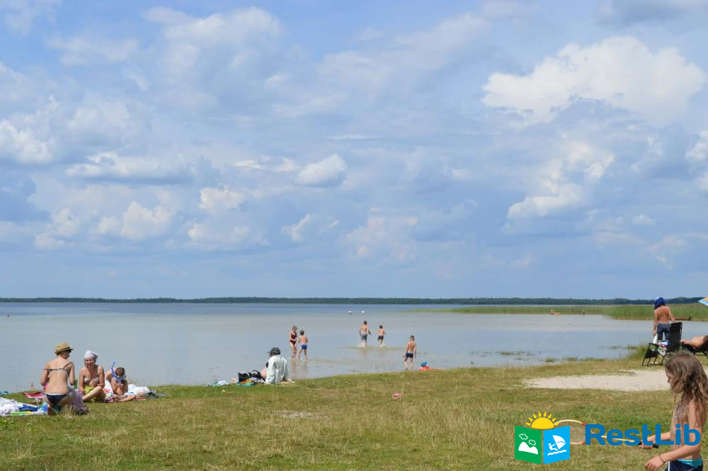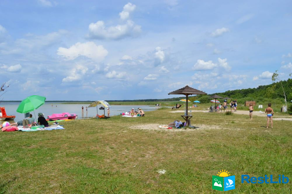 Пляж на озері Світязь доглянутий (встановлені лавки, роздягалки, грибки), знаходиться поруч з сосновим лісом.