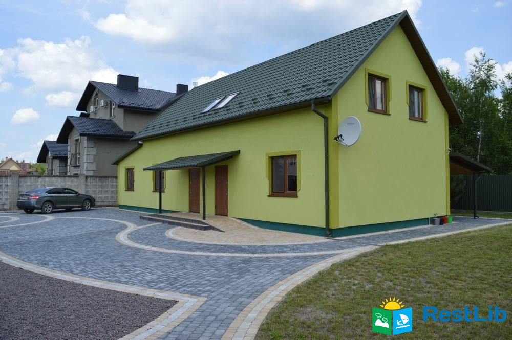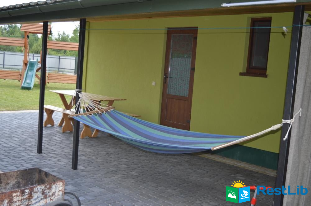 Великий просторий двір, зелений газон, бруківка, дитячий майданчик, гамак, місце для паркування автомобіля, Wi-Fi.