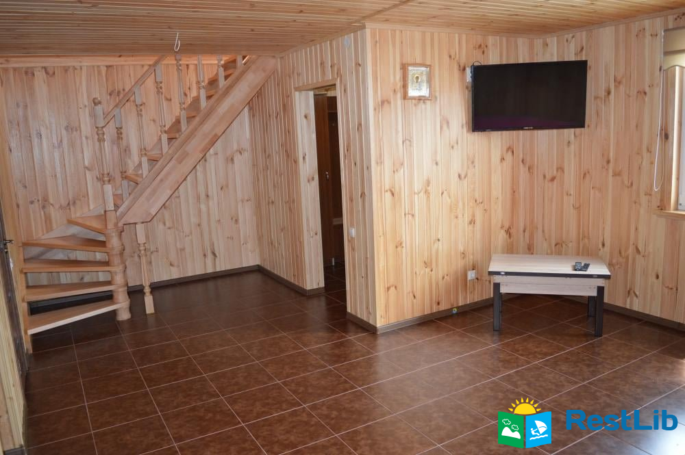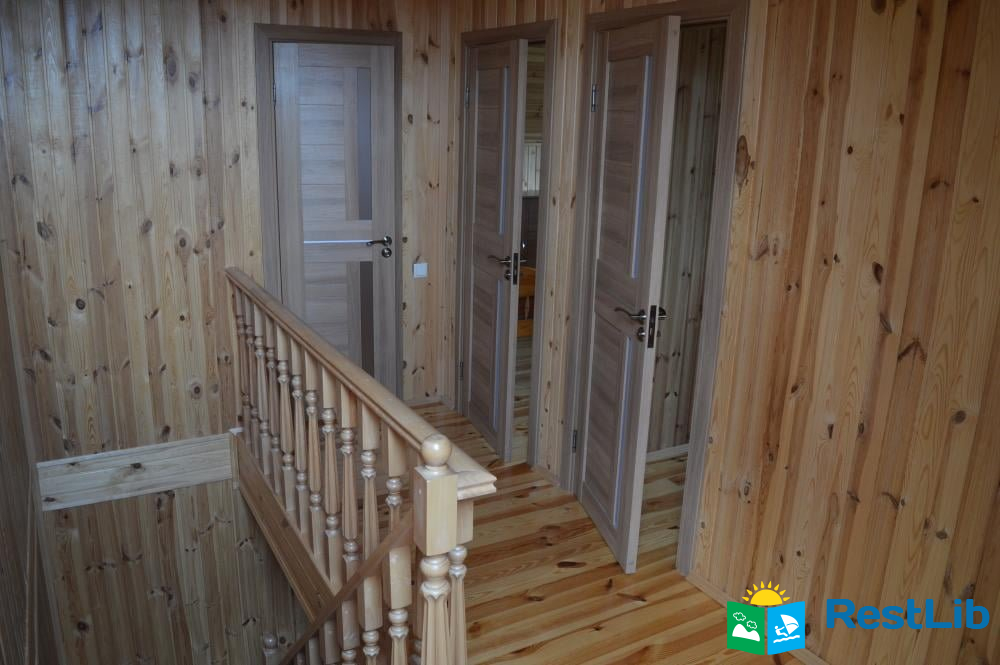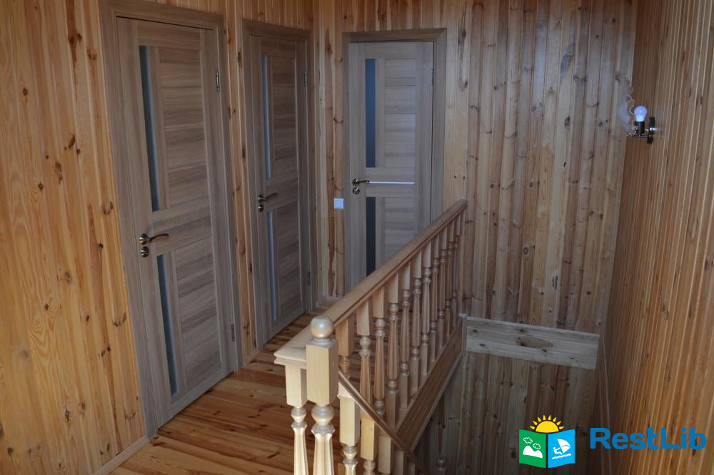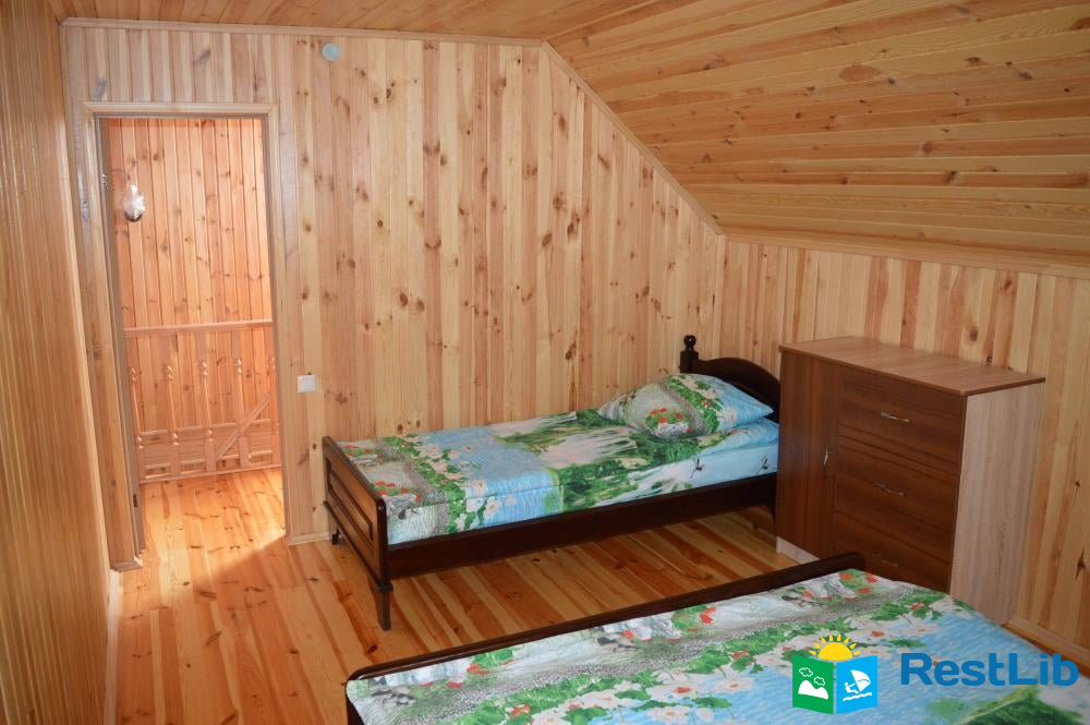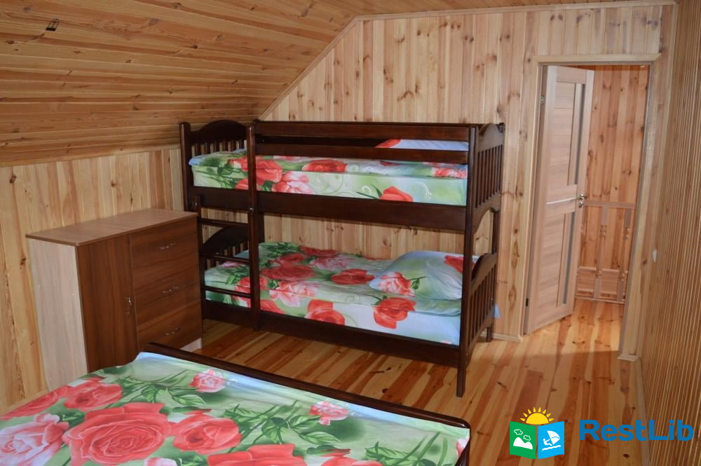 Другий поверх: 2 кімнати (одна тримісна та одна чотиримісна кімнати), санвузол (унітаз та біде). В одній кімнаті двоспальне ліжко та двоярусне, в іншій - двоспальне ліжко та односпальне.
