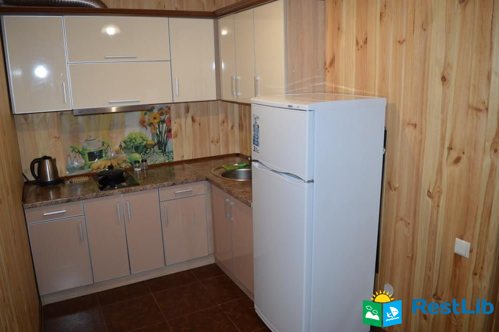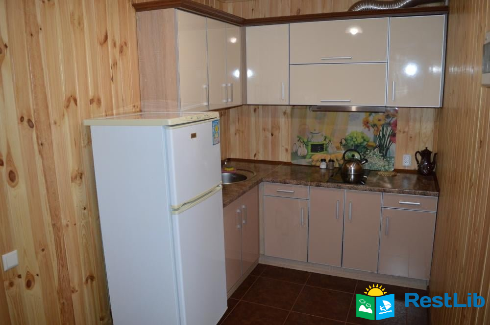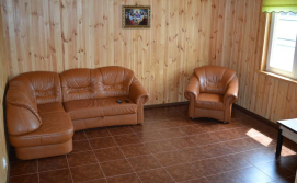 Перший поверх: вітальня з м'яким куточком (диван розкладний та крісло), кухня (є весь необхідний посуд, електроплита, холодильник, електричний чайник), санвузол (душ, унітаз, умивальник). Окремий вхід.