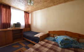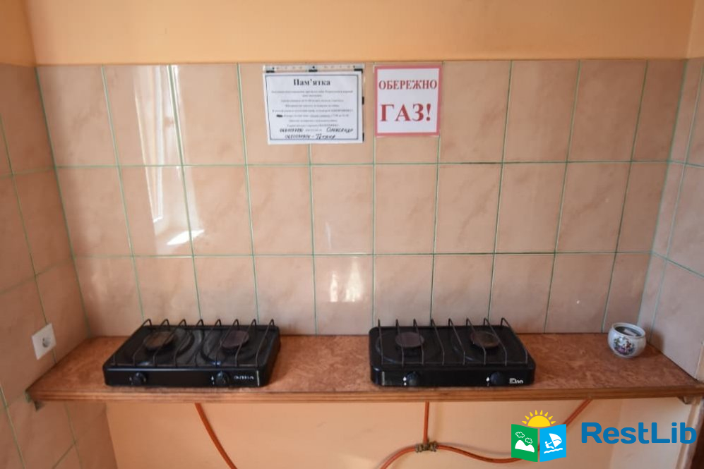 - Номери напівлюкс (два двомісні та два тримісні номери). Загальна кухня (4 газових плити, мийка, чайник, посуд).