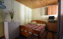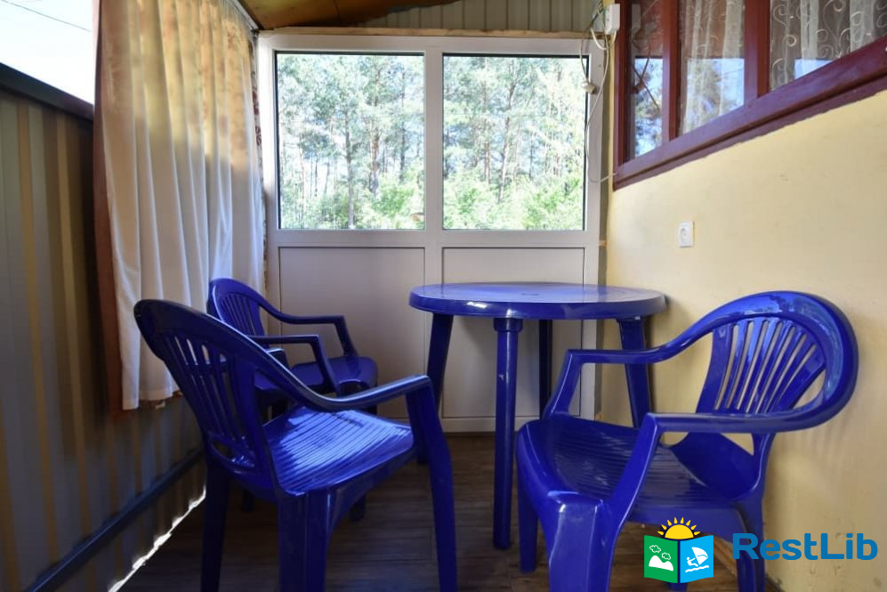 В номері є: двоспальне та полуторне ліжко, телевізор (супутникове ТБ), холодильник, вентилятор, санвузол (душ, туалет, умивальник). Номер в триповерховому будинку (на 1, 2 і 3 поверсі). Вхід з коридору. Перед входом на 1 і 2 поверхах є тераса, на 3 - мансардра.